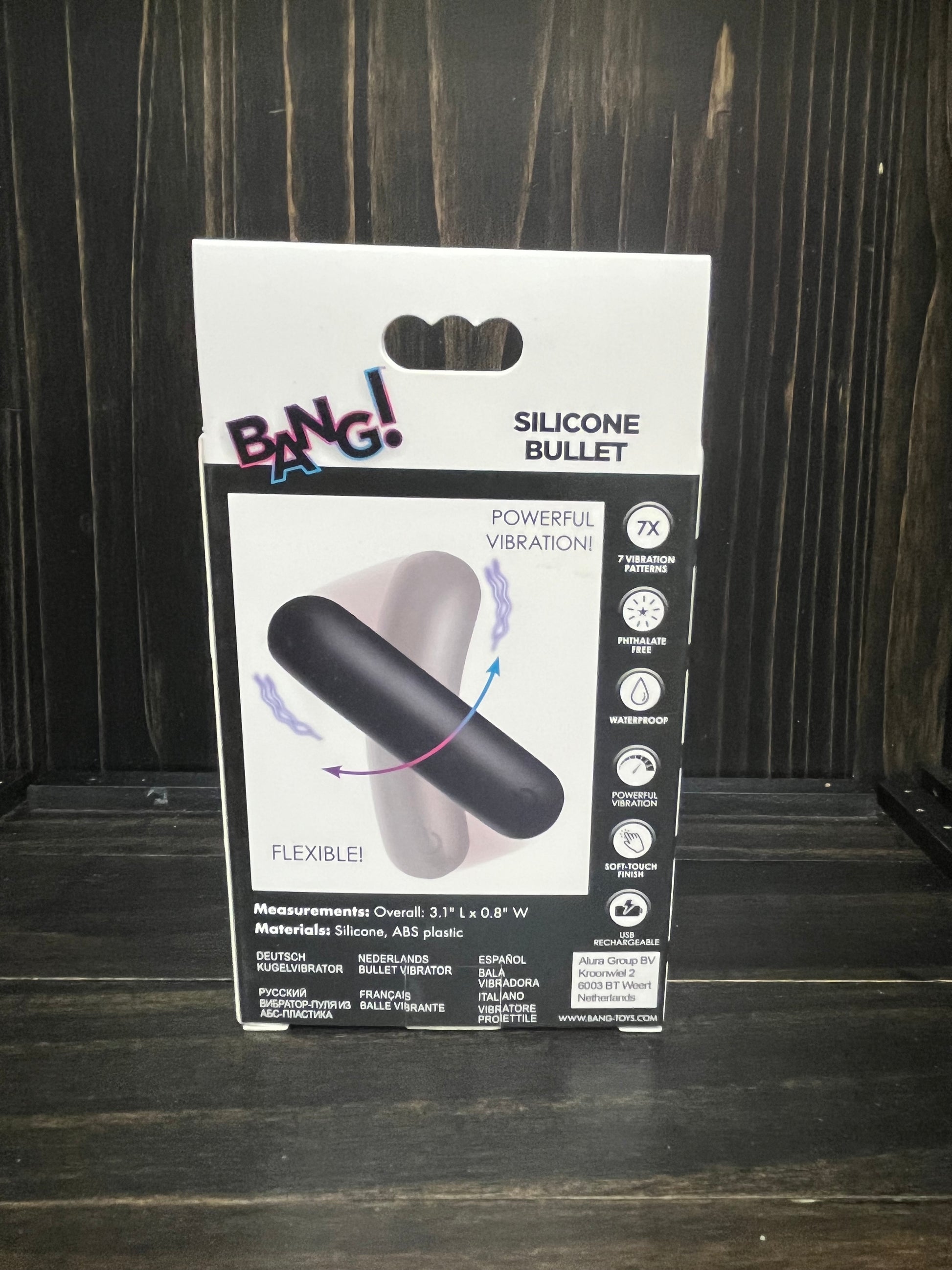 Experience the ultimate in pleasure with Bang! Flexible Silicone Bullet Vibe. Made of squishy, liquid silicone, this silky-smooth bullet comes with seven powerful vibration modes to explore all your sweet spots. Whether alone or with a partner, its compact size and lightweight design make it perfect for any position. Get ready to Bang! into a world of intense pleasure. Rechargeable.