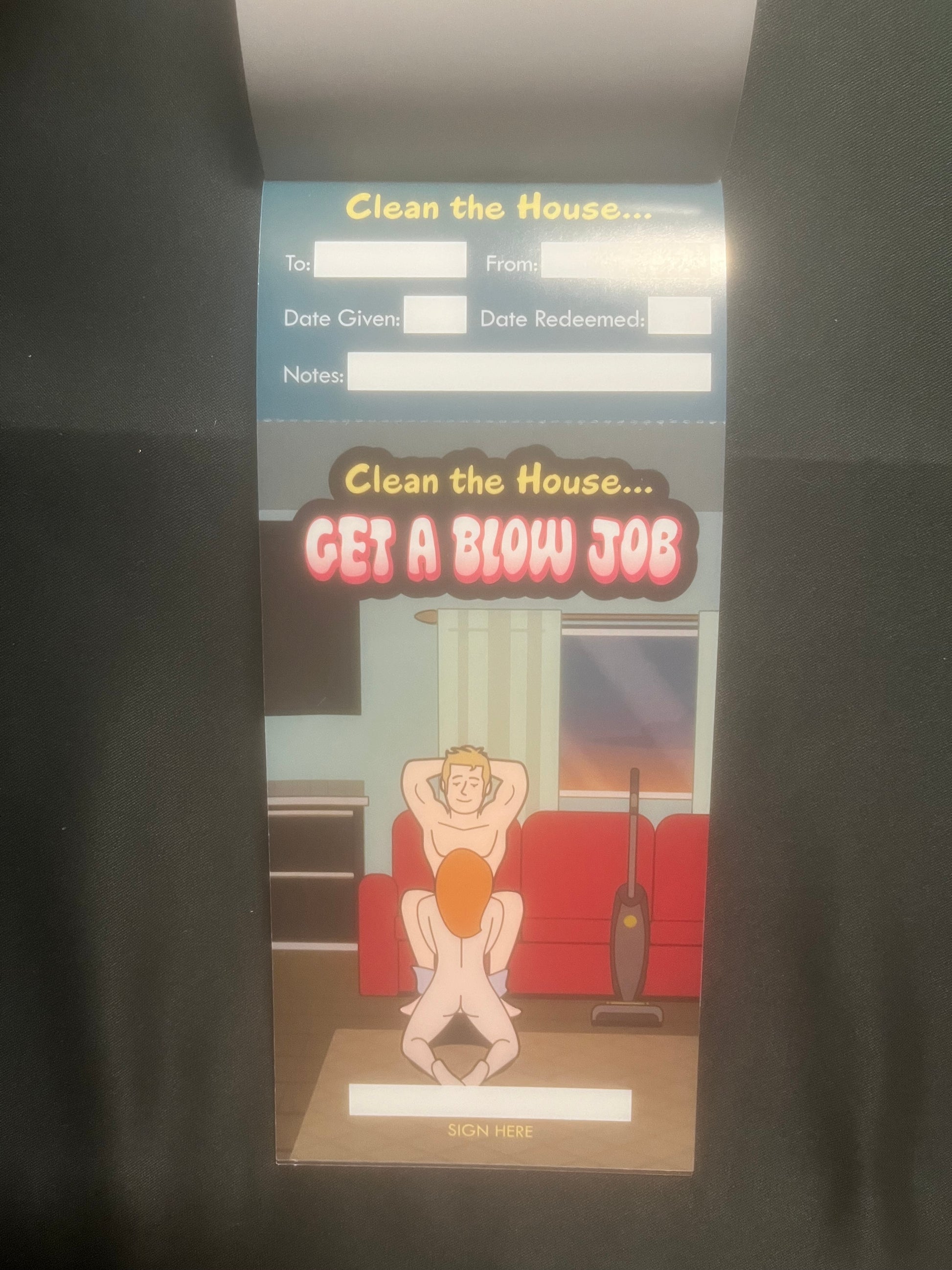 Get things done around the house or treat yourself with the Blow Job Rewards Voucher Booklet. Tear away ten thoughtful vouchers for some sexy surprises or motivation!