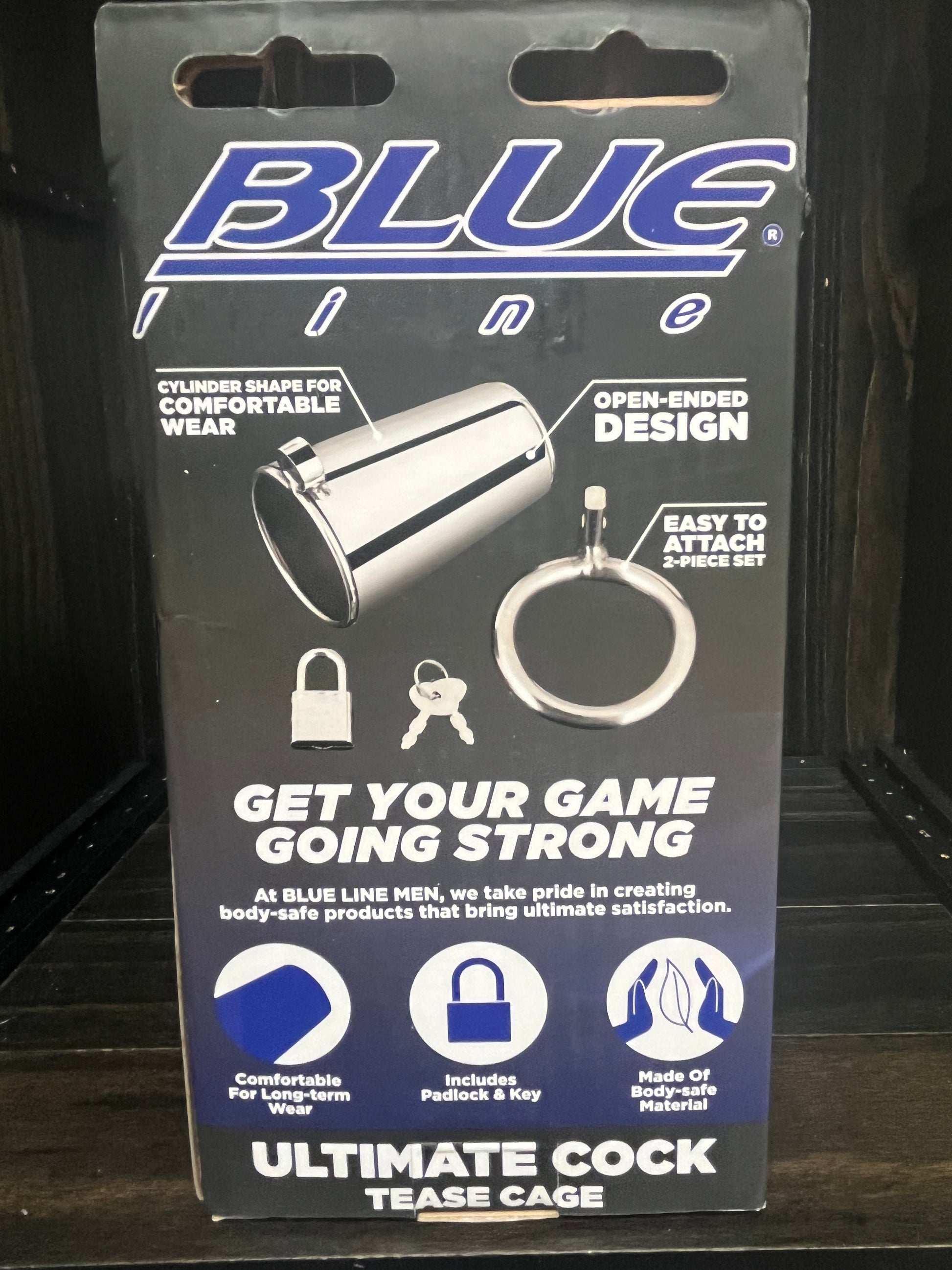 Experience ultimate control with the Blue Line Ultimate Cock Tease Cage. This stainless steel device features a simple yet effective design that's easy to apply but requires permission to remove. The cage surrounds the shaft's lower half while leaving the tip exposed for teasing possibilities. Includes a secure padlock with two keys for safe play. Made from body-safe, temperature-sensitive steel, this cage delivers both physical and psychological stimulation for unforgettable intimate experiences.