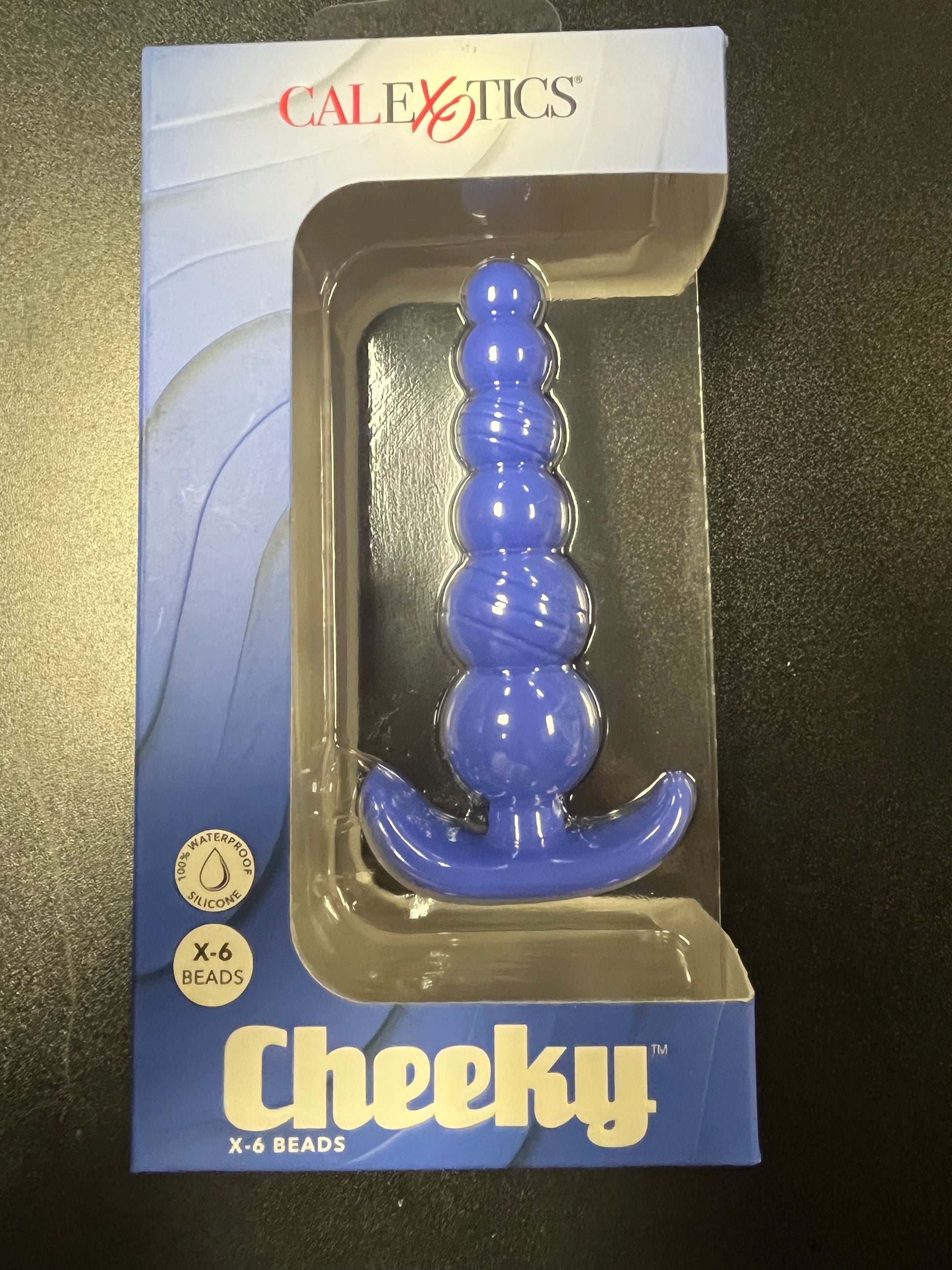Take your anal play to the next level with the CalExotics Cheeky X-6 Beaded Plug. Its bright blue color adds a fun touch, while the flexible beads offer a range of sizes for a personalized experience. The hypoallergenic silicone and easy-to-clean design make it a must-have for any collection.