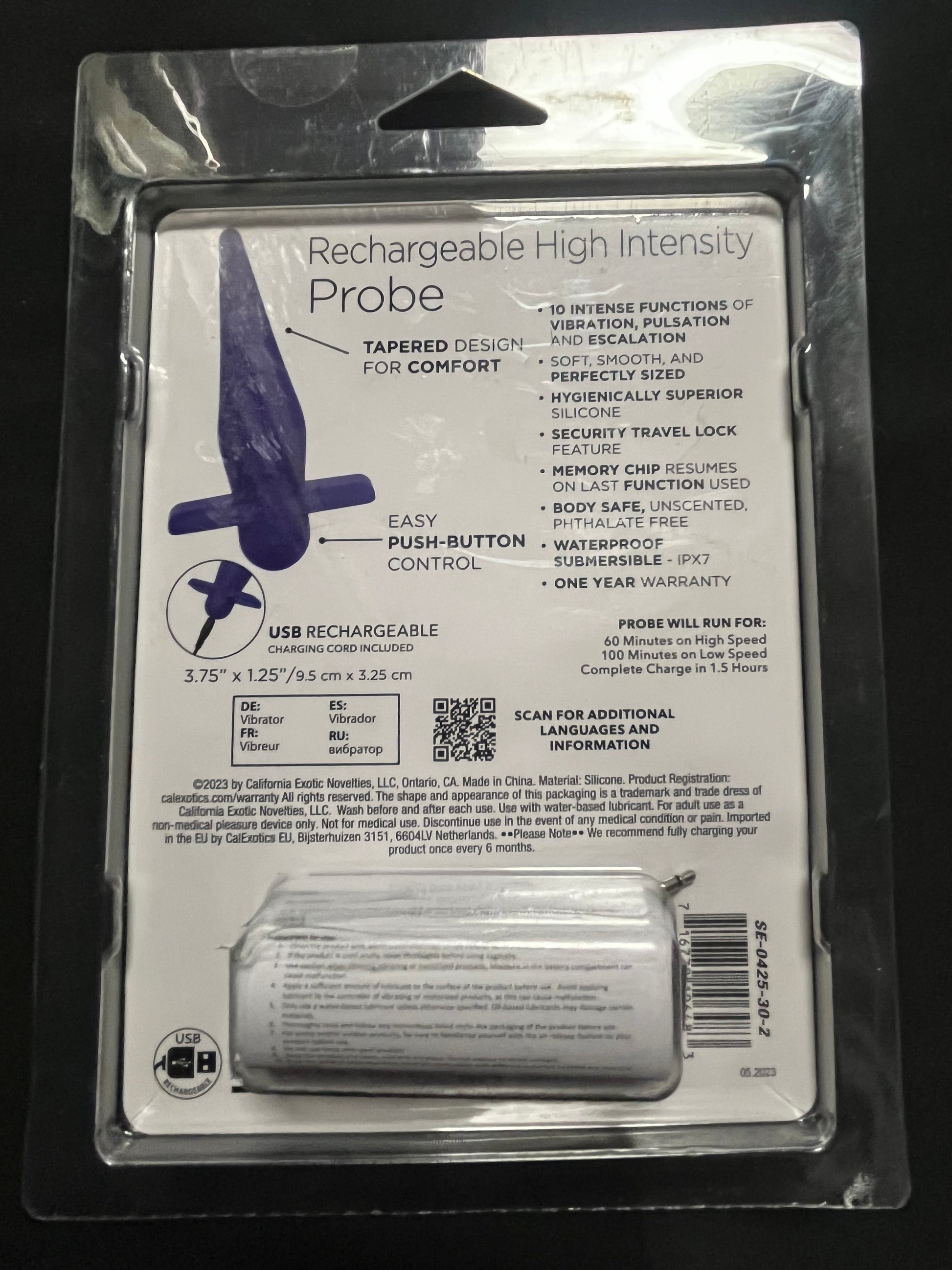 Intensify your play with the CalExotics High Intensity Vibro Tease Anal Probe! Discover intense pleasure with its powerful vibrations and flexible design. Perfect for all levels, its tapered shape and wide base provide easy and comfortable use. The removable vibe adds extra stimulation for a satisfying experience. Rechargeable.