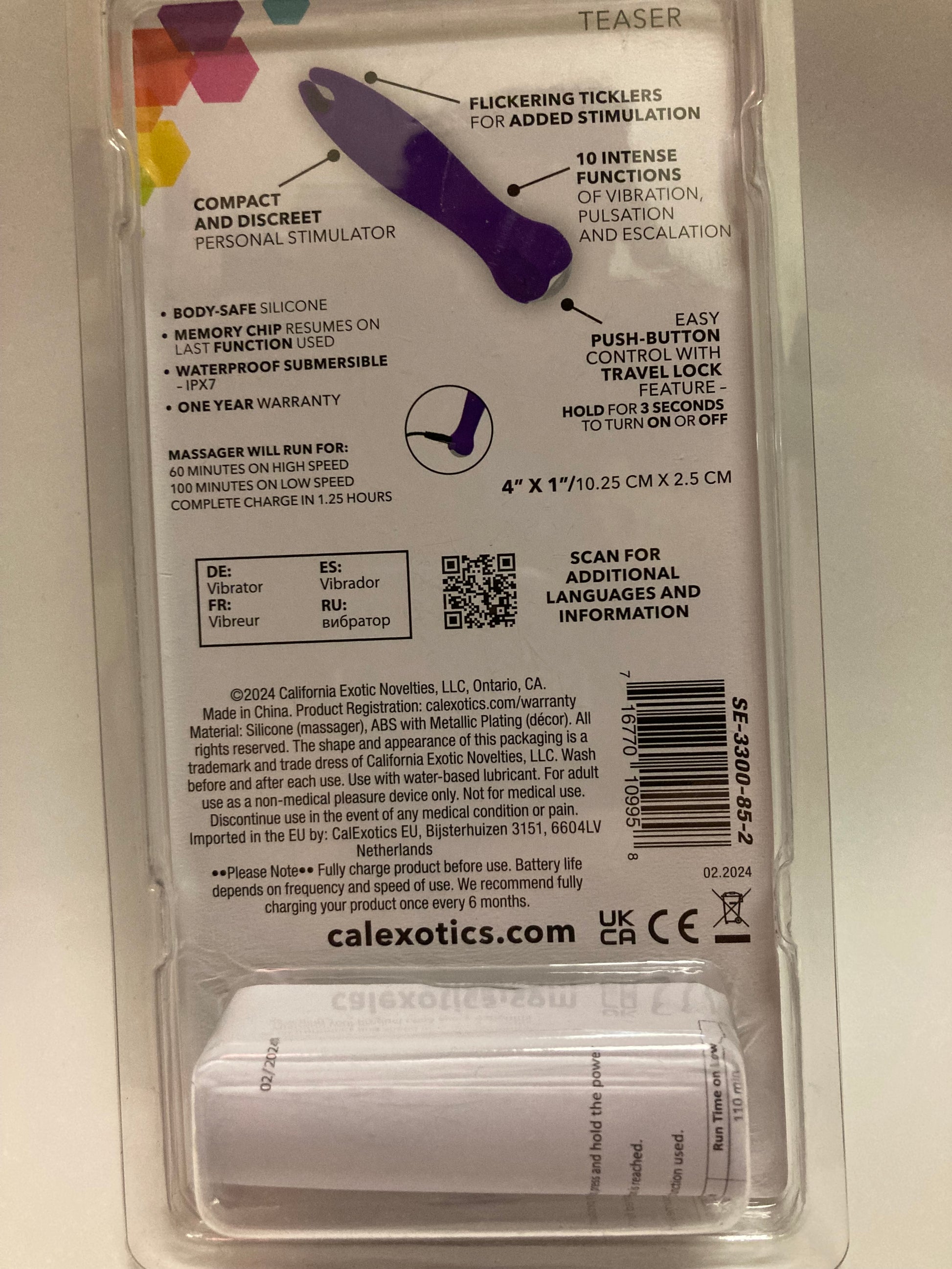 Introducing the CalExotics Kyst Teaser Bullet Vibe, the perfect toy for clitoral and nipple stimulation. With ten speeds and easy controls, it delivers a powerful yet quiet vibration. Made of silky silicone, it's safe and easy to clean. Use with any water-based lube and recharge with the included USB cord. Waterproof for fun in any setting.