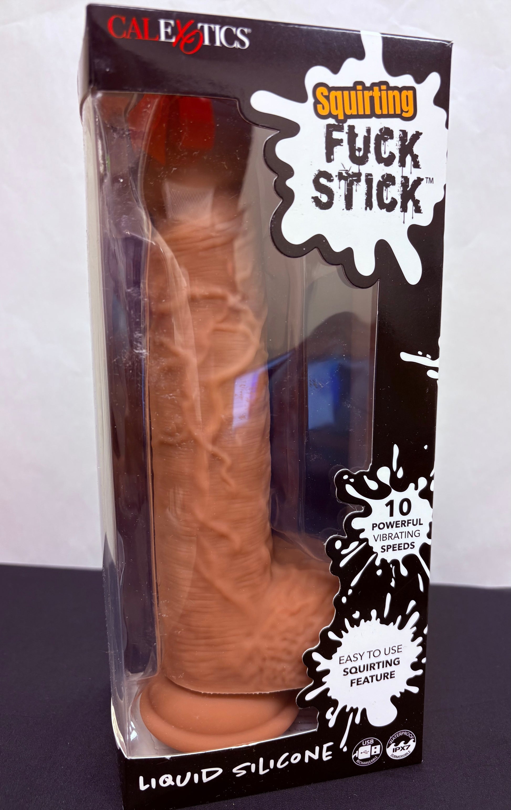 Looking for a multi-purpose cock that can deliver mind-blowing pleasure? Look no further than the revolutionary Fuck Stick from CalExotics! Whether you're using it solo or with a partner, this toy will exceed all your expectations with its lifelike design and ability to squirt on command. With a hollow reservoir that can be filled with your choice of lube or special "Fuck Sauce", this vibe can deliver exactly what you desire at the touch of a button. The smooth tip and veiny shaft provide exquisite stimulation, while the ten different vibration rhythms will take you to new levels of ecstasy. And with its sturdy suction cup and compatibility with harnesses, the Fuck Stick offers endless possibilities for hands-free play. Made with 100% body-safe liquid silicone, this toy is easy to clean and maintain for long-lasting enjoyment. Don't wait any longer, get your hands on the game-changing Fuck Stick today!