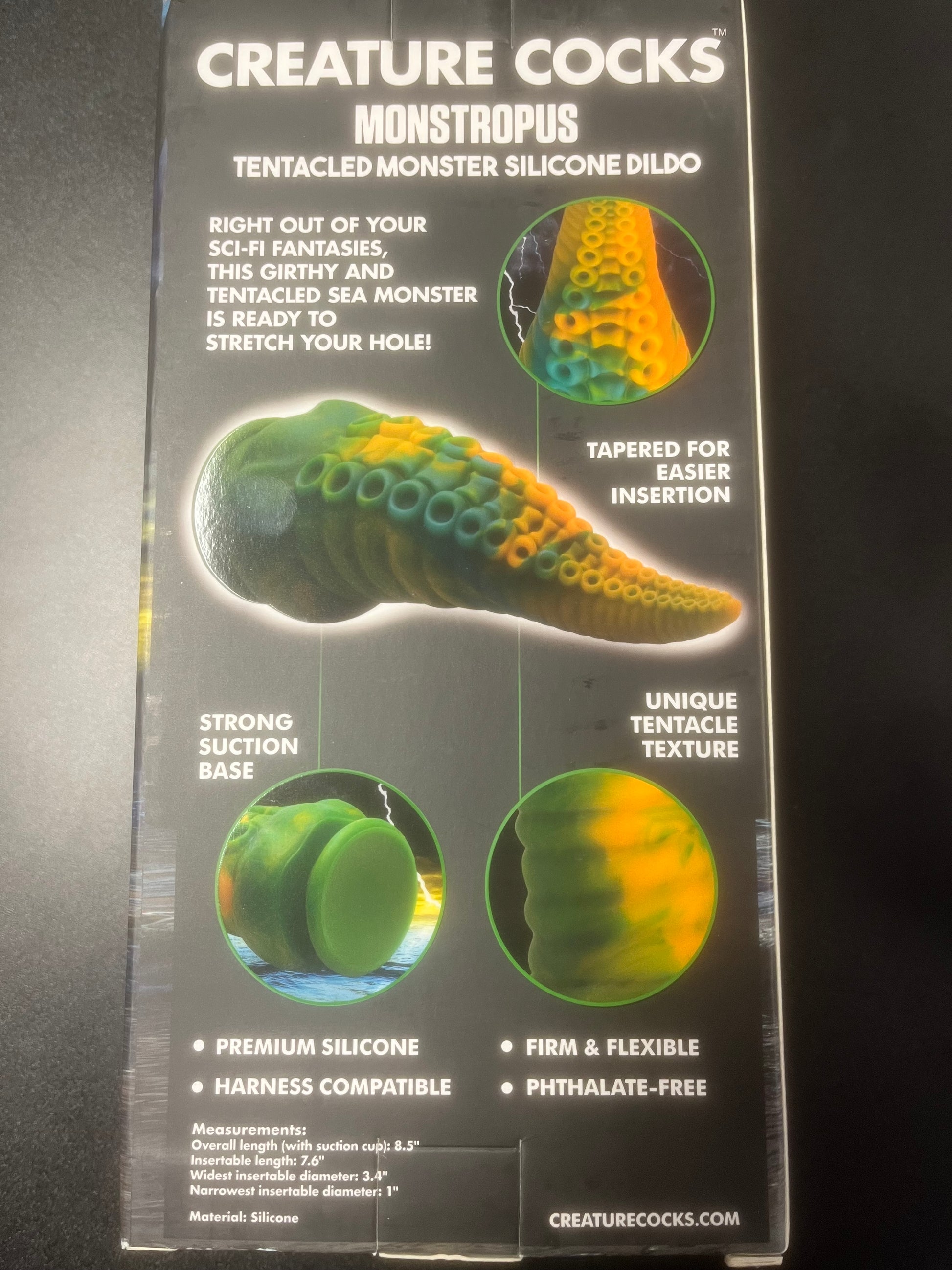 Unleash your deepest fantasies with the Creature Cocks Monstropus Tentacled Monster Dildo. With a soft, curvy point and textured design, this dildo offers an intense and pleasurable experience. Whether you're into strap-on play or solo use, the huge suction-cup base and O-ring compatibility make it easy to explore your desires. Dive into a world of pleasure with Creature Cocks.