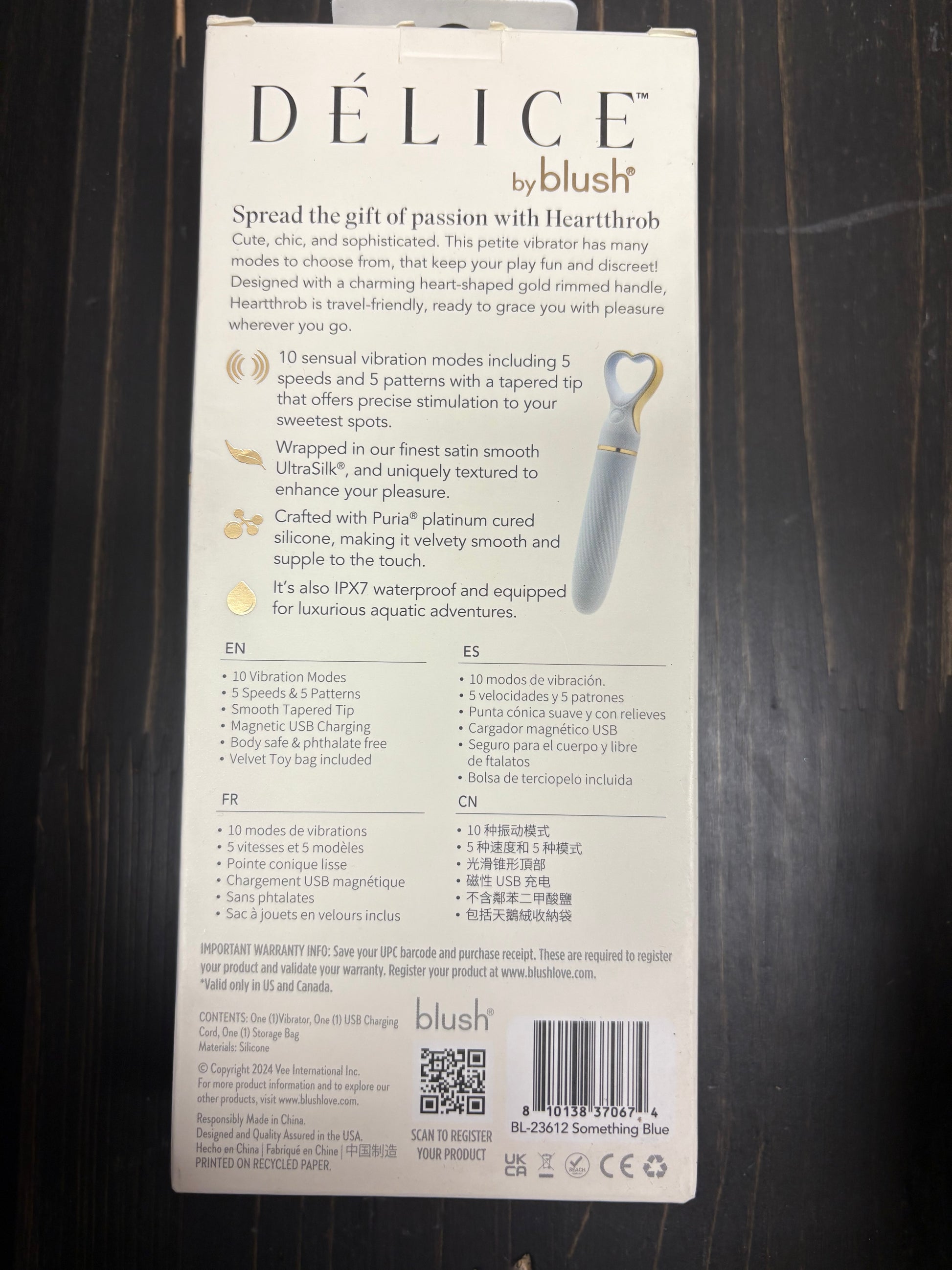 Experience intense pleasure with the Délice Heart Throb Sleek Bullet Vibe. Crafted from body-safe Puria® platinum-cured silicone, its soft, textured surface glides smoothly over sensitive spots for maximum comfort. The sleek, pointed bullet delivers powerful vibrations through ten rumbly modes—five speeds and five patterns—controlled easily via the heart-shaped handle. Compact and rechargeable, it’s perfect for solo play or spicing up partner moments anywhere your desires take you. Elevate your sensual adventures with this irresistible, silky silicone stimulator.