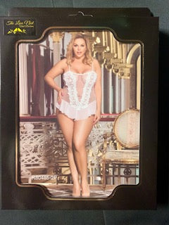 Get ready to look cute and chic with this adorably dotted white floral teddy! Its ruffle trimmed waist is the perfect touch to elevate your outfit and make you stand out and get that attention you deserve. Say goodbye to boring pj's and hello to this eye-popping piece!
