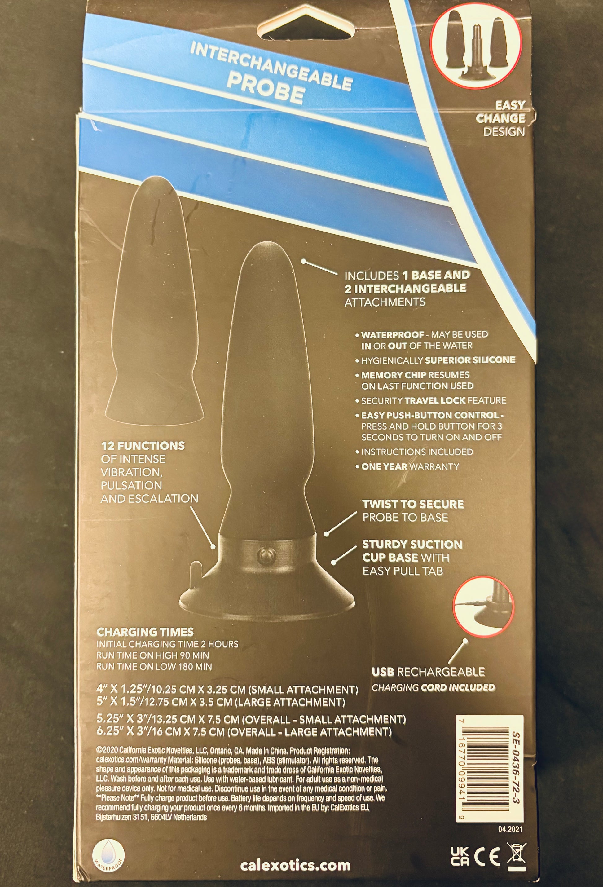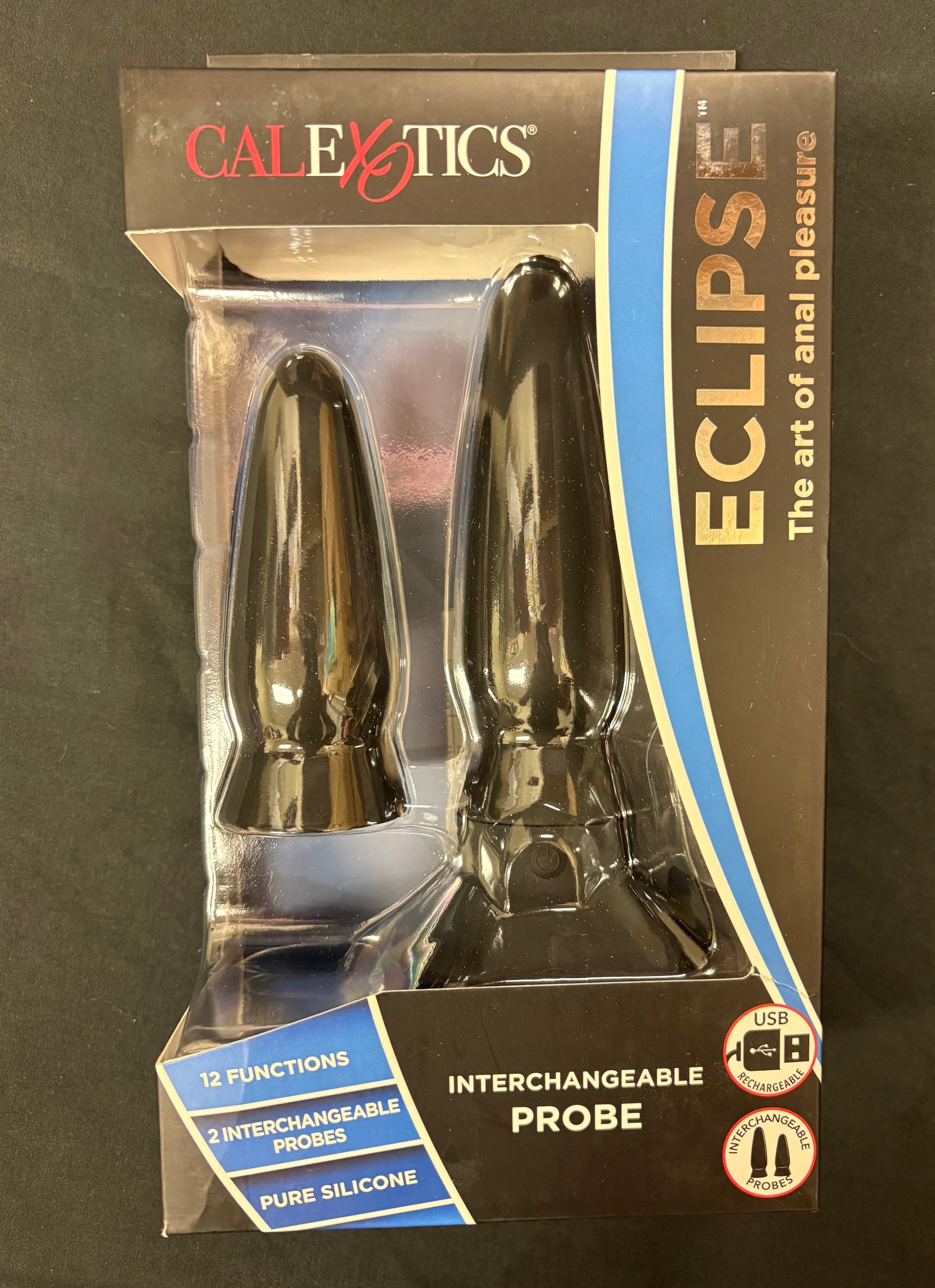 The Eclipse Rechargeable Interchangeable Probe Vibe offers a sleek, classic shape for easy, comfortable use. Its gently widening tip leads to a fuller swell and a slim neck where the powerful base attaches. With twelve thrilling vibration modes, just press a button to explore your pleasure. Made from silky silicone, it’s hygienic and simple to care for—clean with warm water, toy cleaner, or even toss in the dishwasher (minus the power base!). Compatible with your favorite water-based lubricants, this vibe is ready to elevate your playtime with ease and delight.