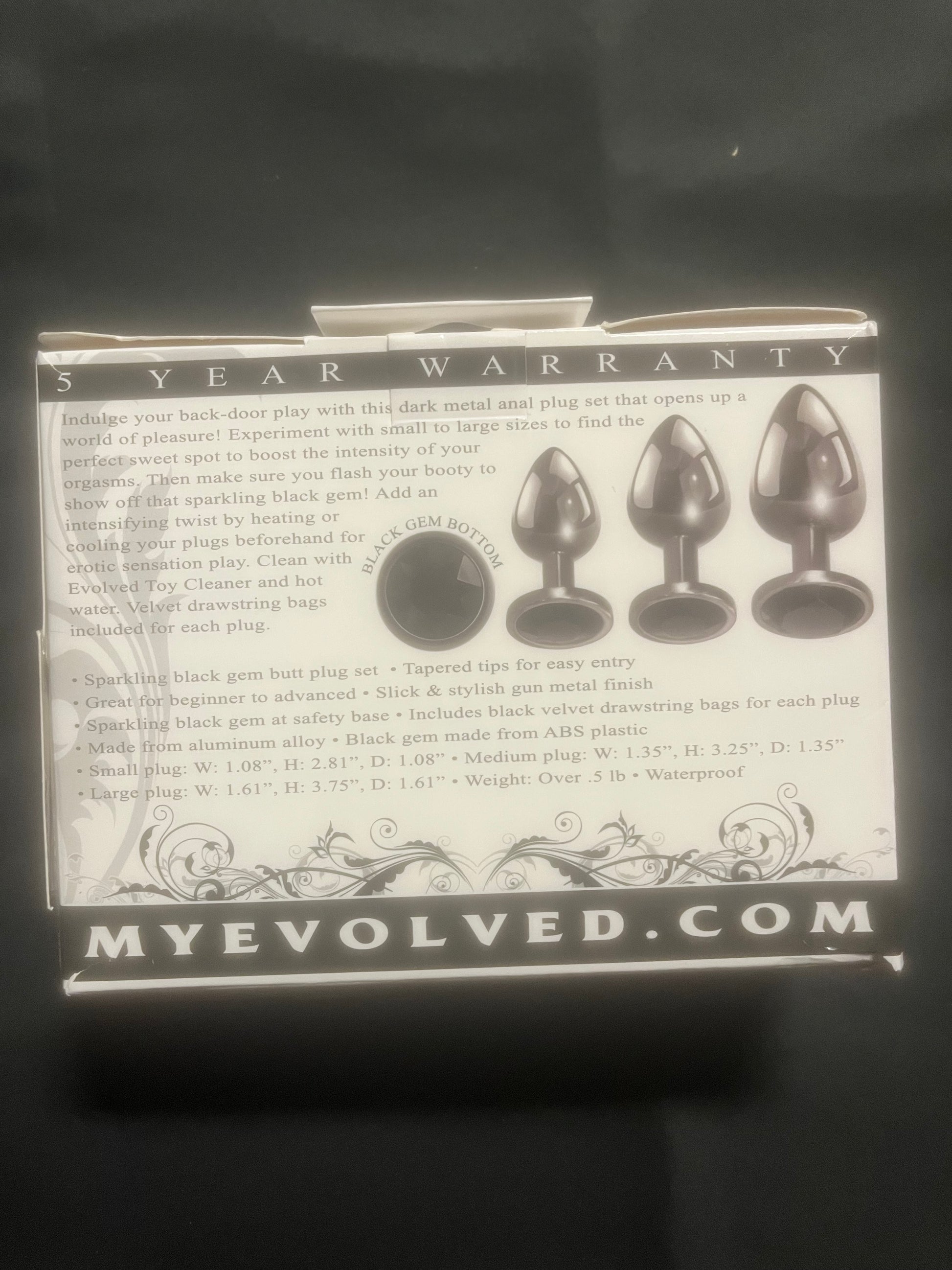 Unleash your inner desires with the Evolved Novelties Black Gem Anal Plug Set! Made of slick, lightweight aluminum alloy, these plugs are easy to clean and compatible with any favorite lube. Use the included storage bags for safekeeping and enjoy a lifetime of pleasure. Get ready to elevate your playtime with this luxurious and versatile set.