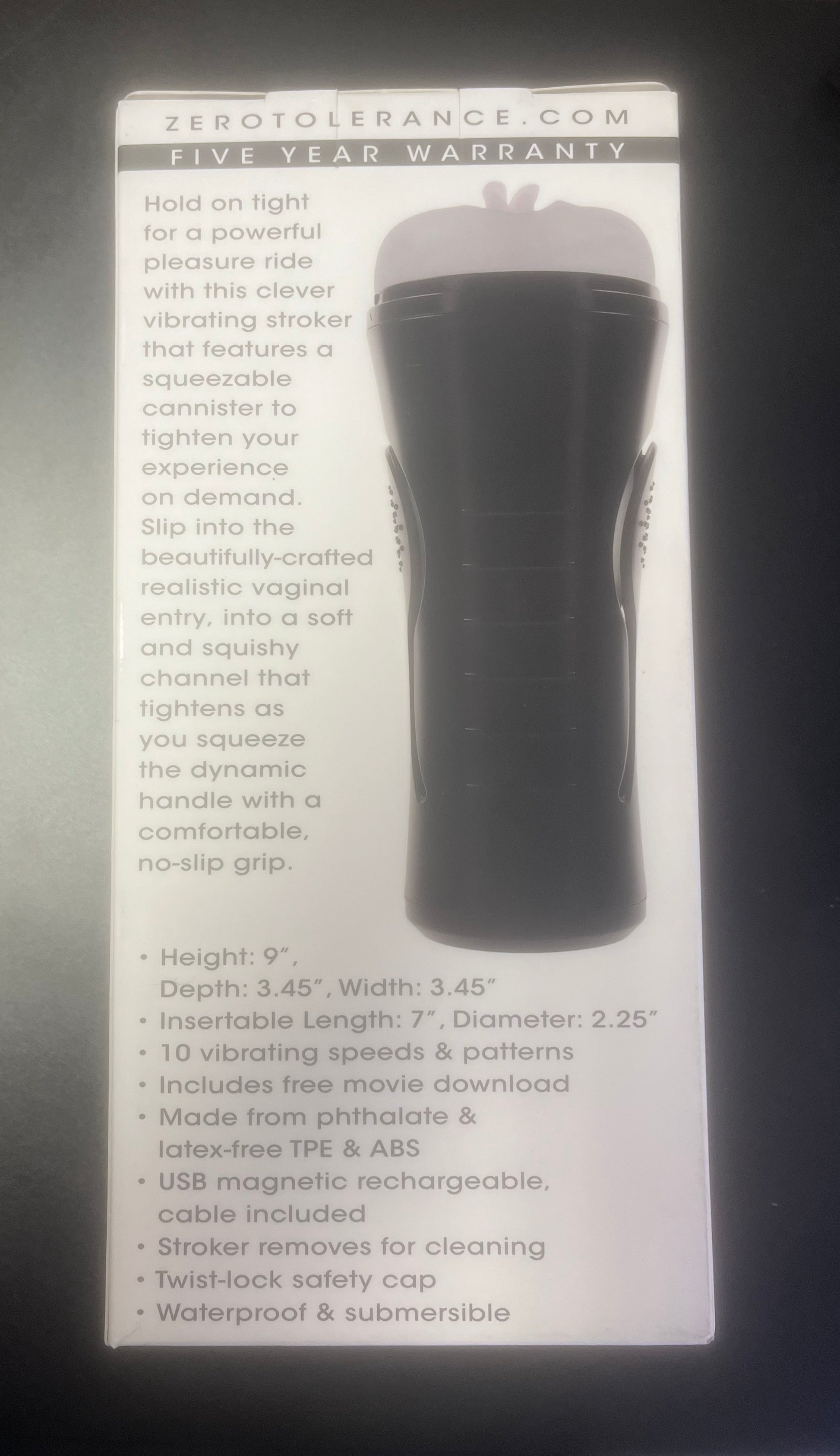 Experience intense pleasure with the Evolved Novelties Hold Tight Masturbator. Enjoy the soft, textured inner sleeve as you hold it in your hand and thrust or switch to one of the ten vibration modes for an all-encompassing sensation. Made with body-safe materials, this self-contained stroker is easy to clean and can be used with your favorite water-based lube. Rechargeable and waterproof, this toy is perfect for solo or partner play.