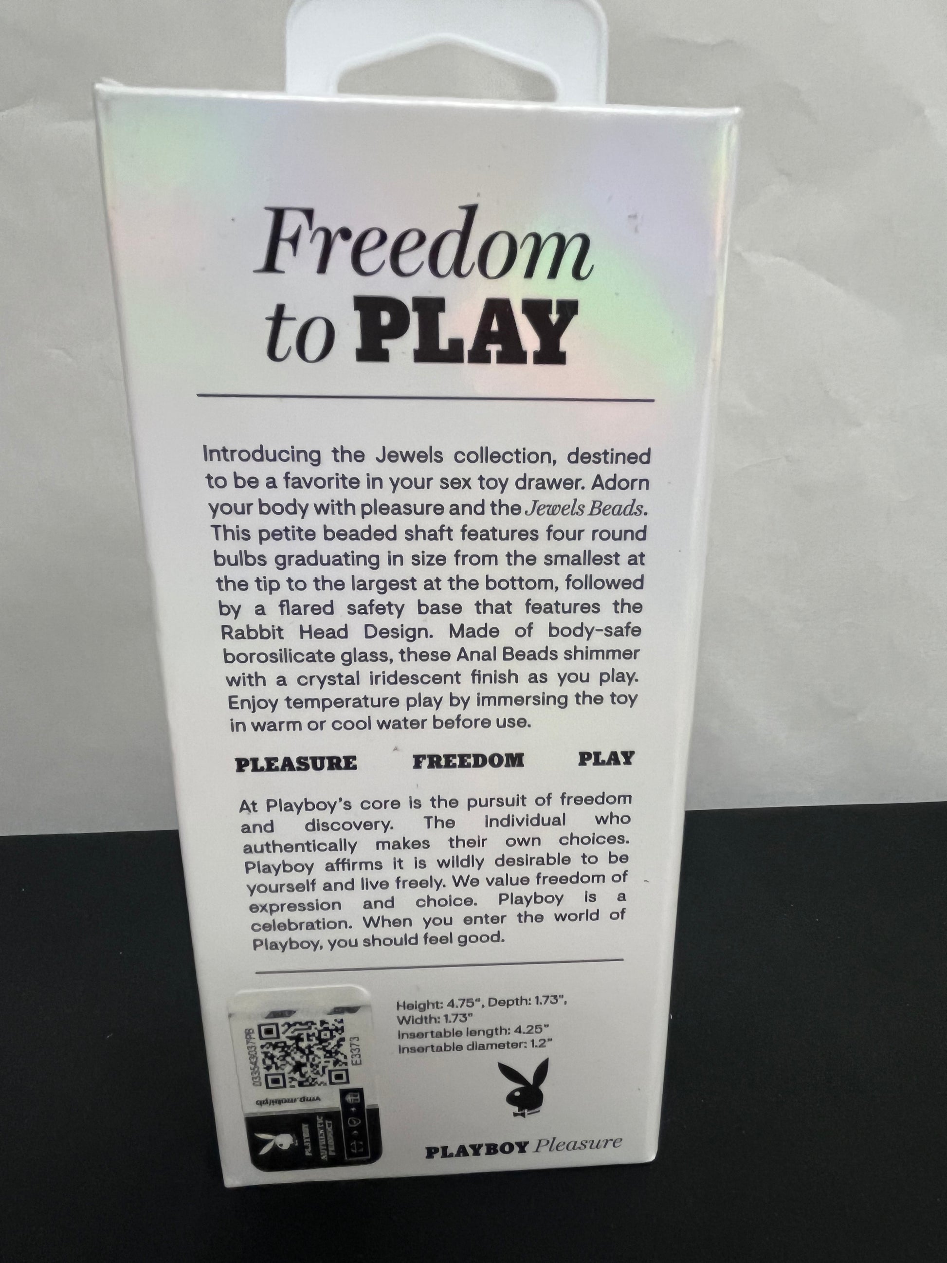 Experience incredible pleasure and endless possibilities with the Evolved Novelties Playboy Jewels Beads Glass Plug! Made from durable, body-safe glass, this perfectly petite plug features four beaded swells for intense anal stimulation. It's also ideal for temperature play, with the ability to heat or cool for added sensation. Upgrade your backdoor fun with the Jewels Beads Plug today!