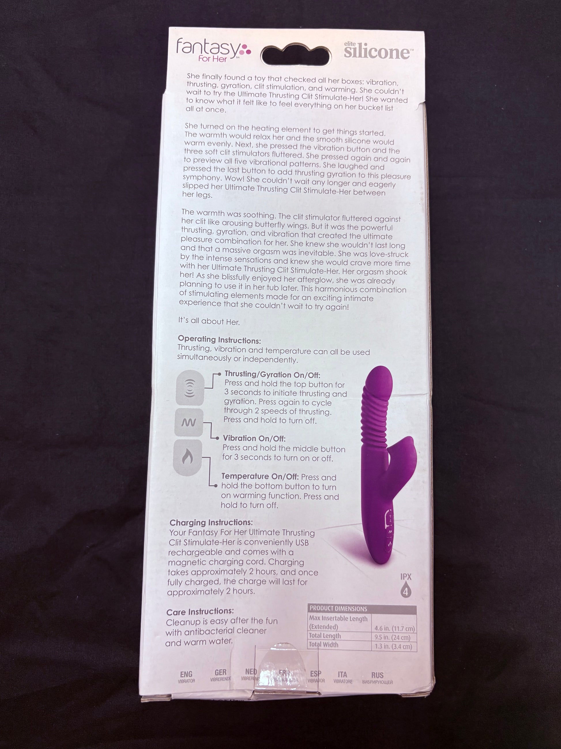 Experience intense pleasure with the Fantasy for Her Ultimate Thrusting Clit Stimulator. Designed to glide smoothly and target your inner erogenous zones, including the G-spot, it offers two speeds of thrusting and gyration. Five pulsating modes from the soft clitoral cup provide varied external stimulation, all controlled independently for a customized experience. Rechargeable via USB, it delivers up to two hours of uninterrupted playtime. Elevate your intimate moments with this powerful, versatile stimulator.