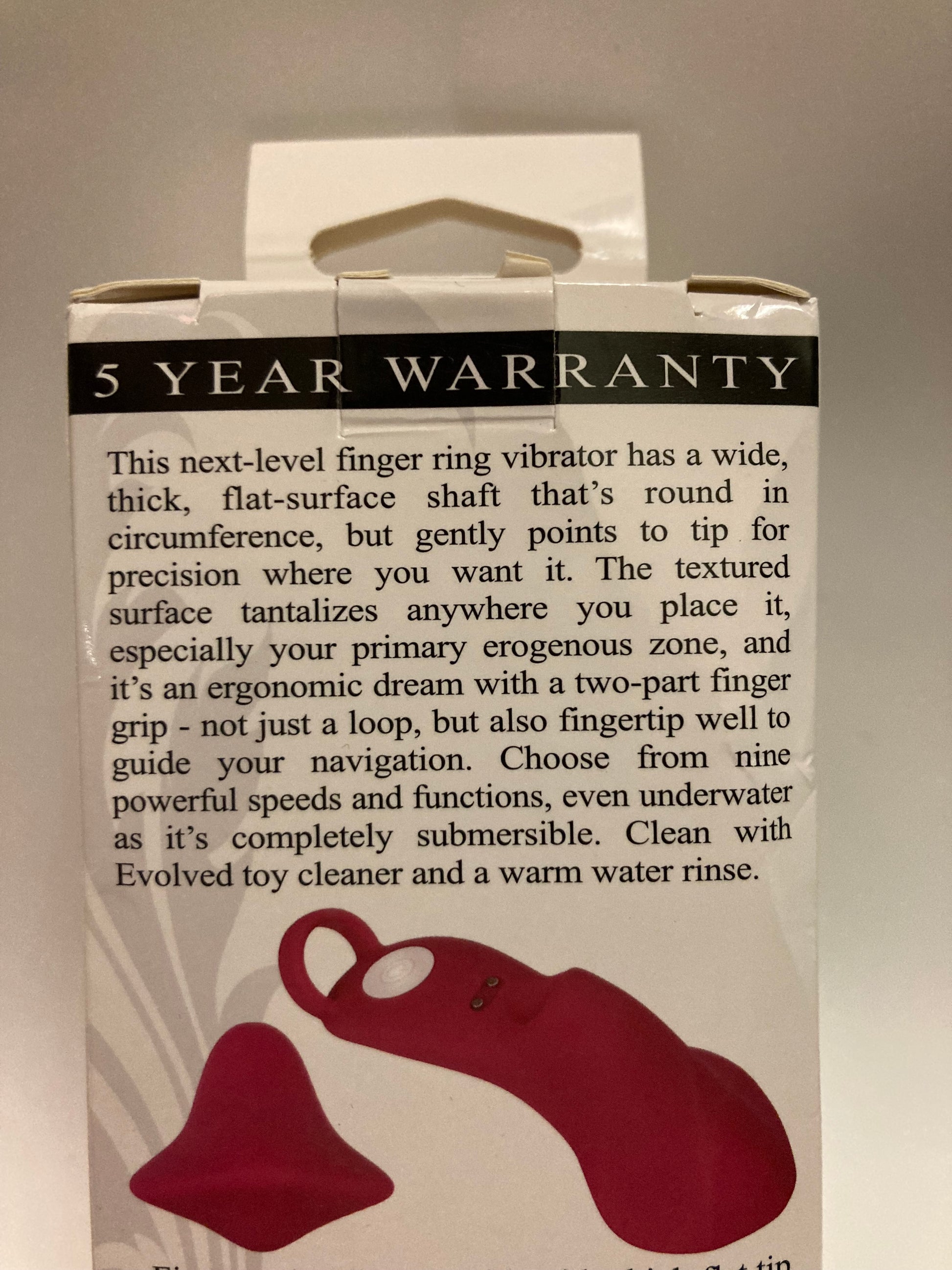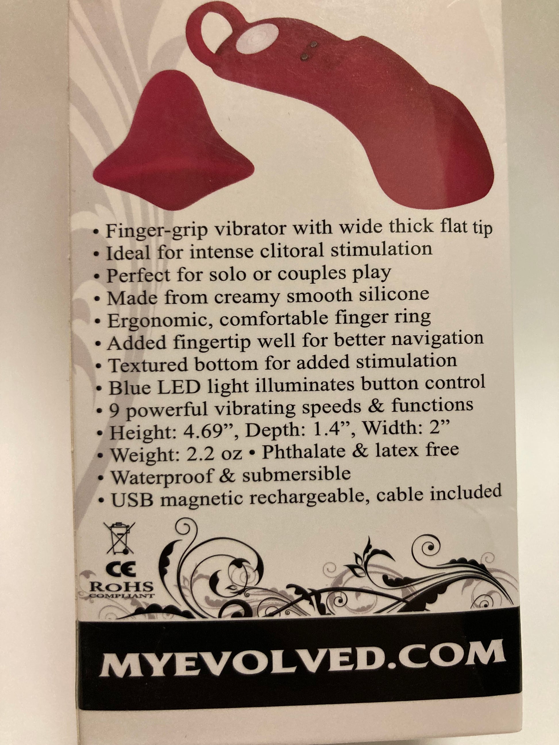 The Frisky Finger Vibe offers nine powerful stimulation modes and easy activation through a single button. Made with hypoallergenic silicone, it's perfect for sensitive skin and simple to clean. Rechargeable via USB, it's always ready for use. Compatible with water-based lubricants.