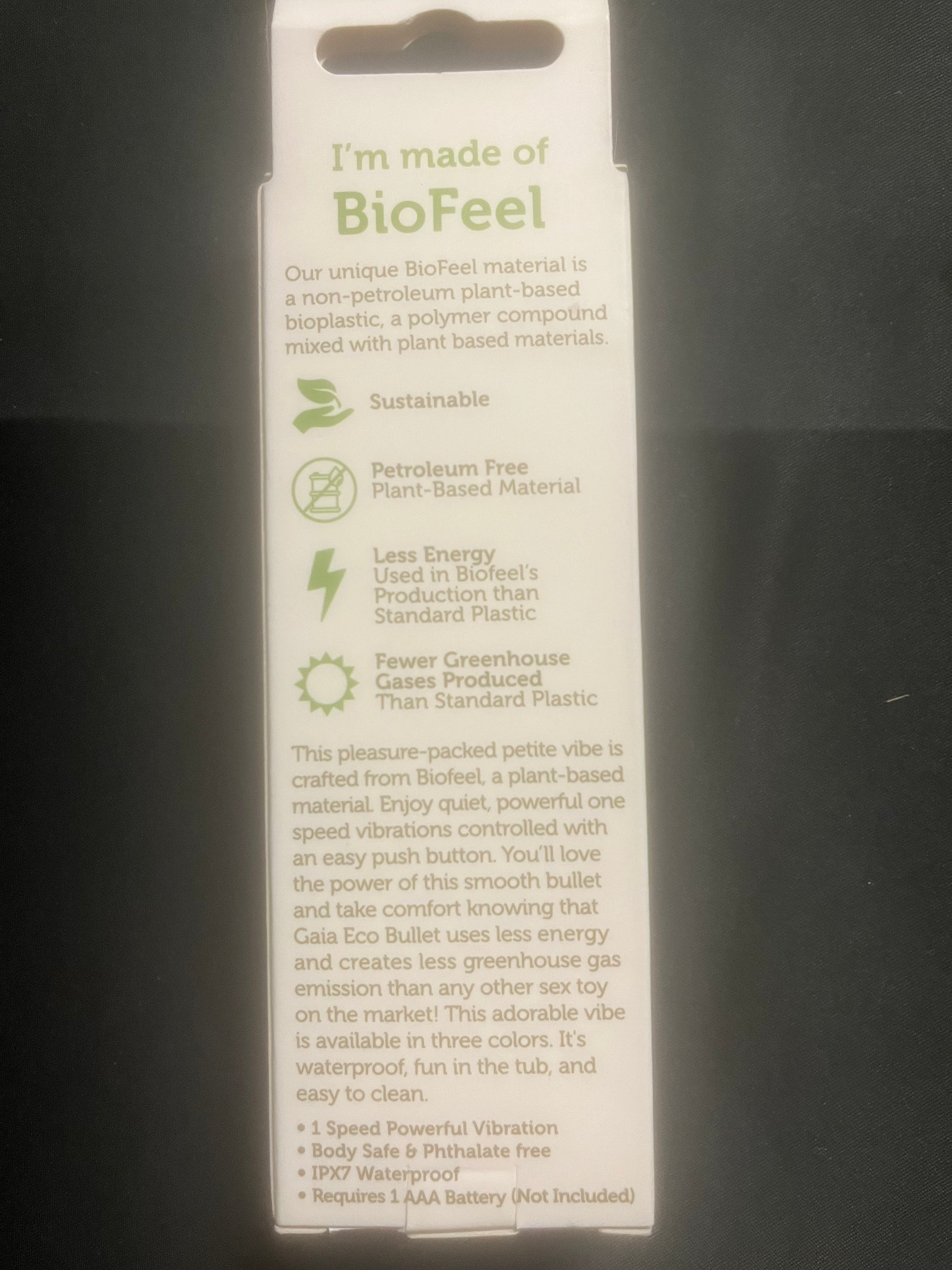 The Gaia BioFeel Biodegradable Bullet Vibe in Green is an eco-friendly and pleasurable addition to your bedroom. Named after the Mother Earth Goddess, this bullet vibe is made with biodegradable materials, making it perfect for eco-minded individuals. Bring Earth Day back every day with this environmentally conscious toy.