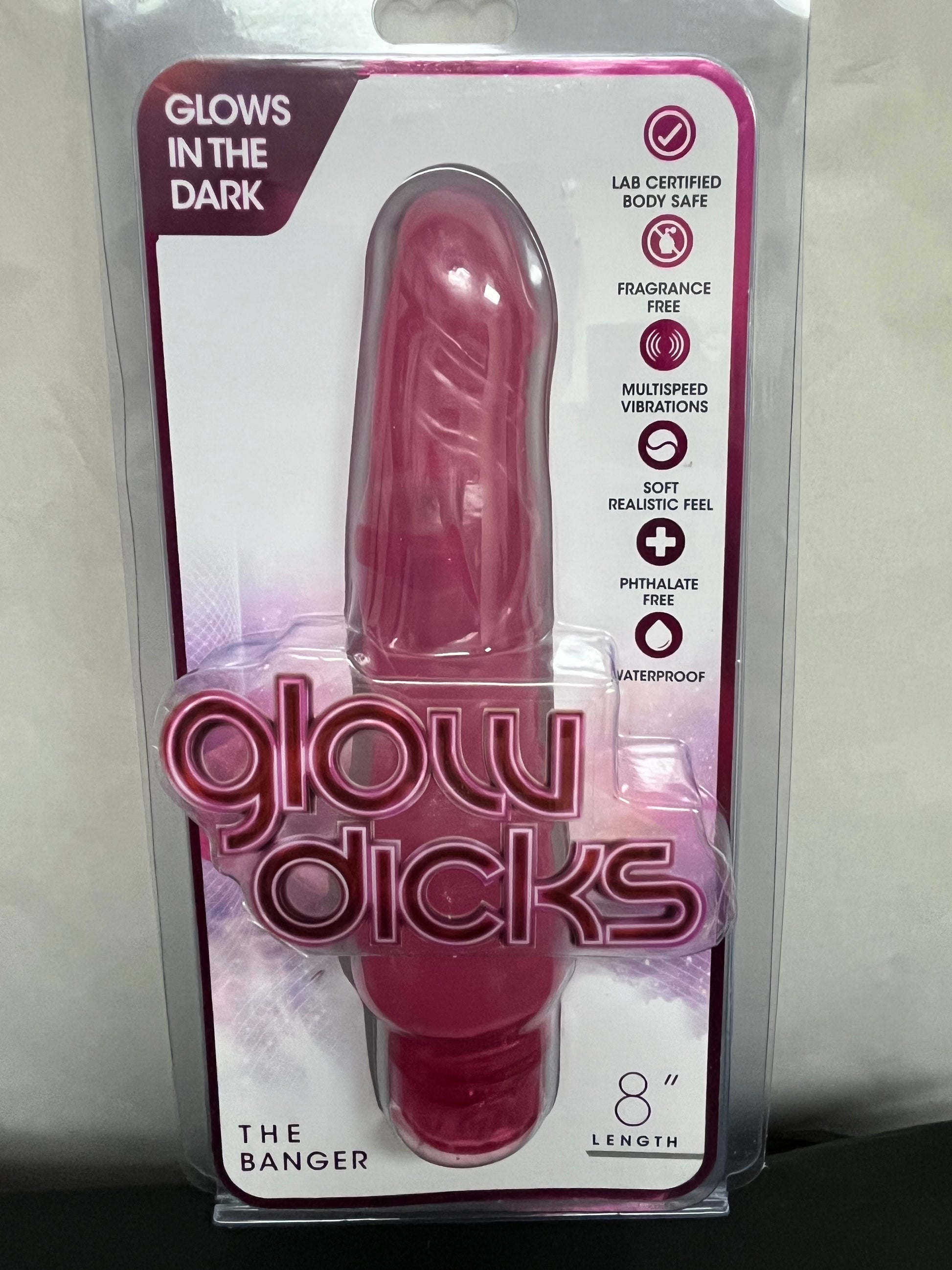 The Blush Novelties Glow Dicks -The Banger is more than just a vibrator - it's a versatile tool for spicing up your intimate moments. With its unique textured design and glowing feature, this sleek toy can be used for solo play or with a partner. Perfect for exploring your erogenous zones, it's the ultimate pleasure seeker.