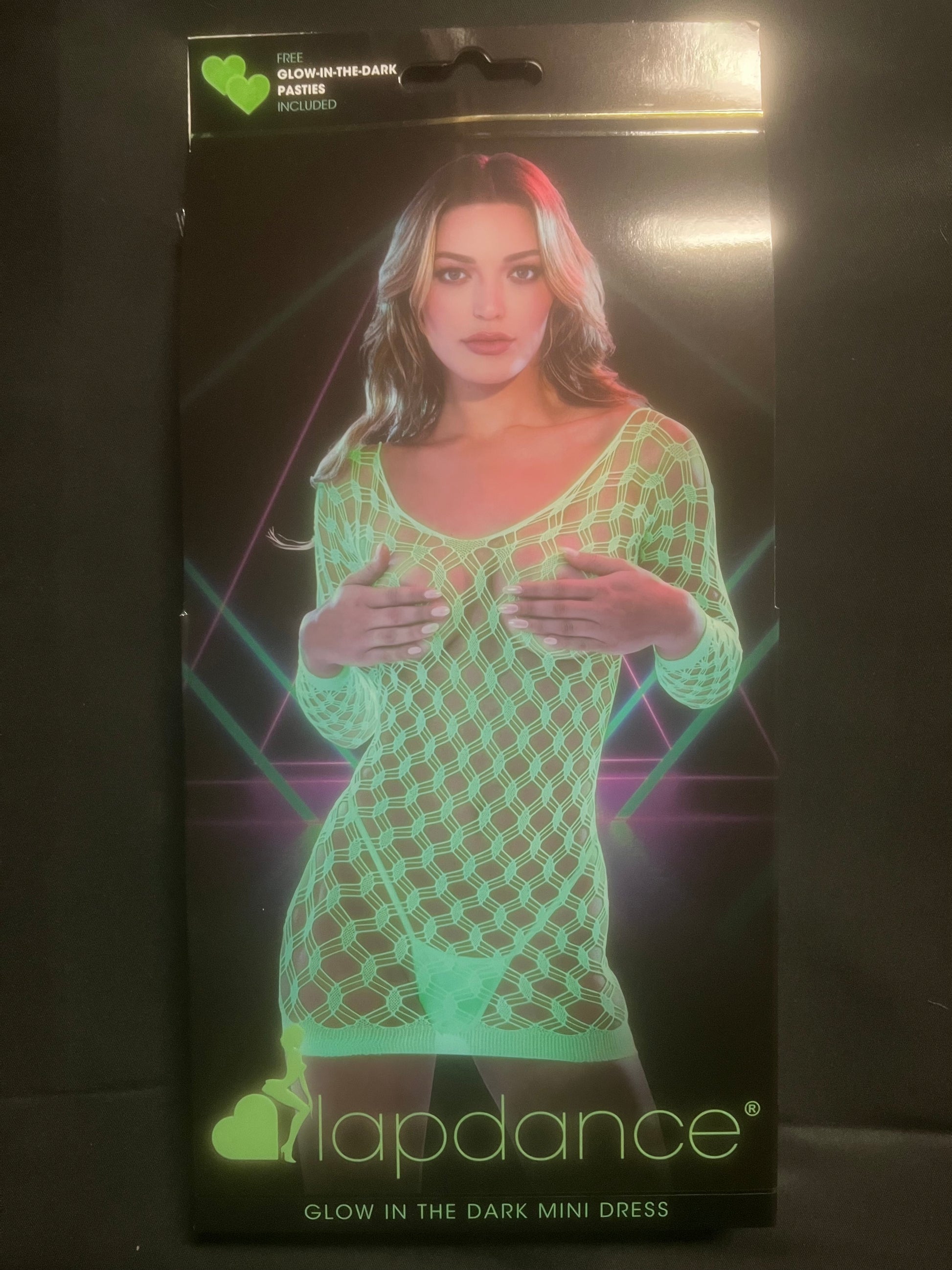 With its bold neon mesh design, this ultra mini dress features a boatneck and long sleeves, adorned with a captivating geometric pattern that becomes even more alluring in the dark. Comes in OS and QS sizes.