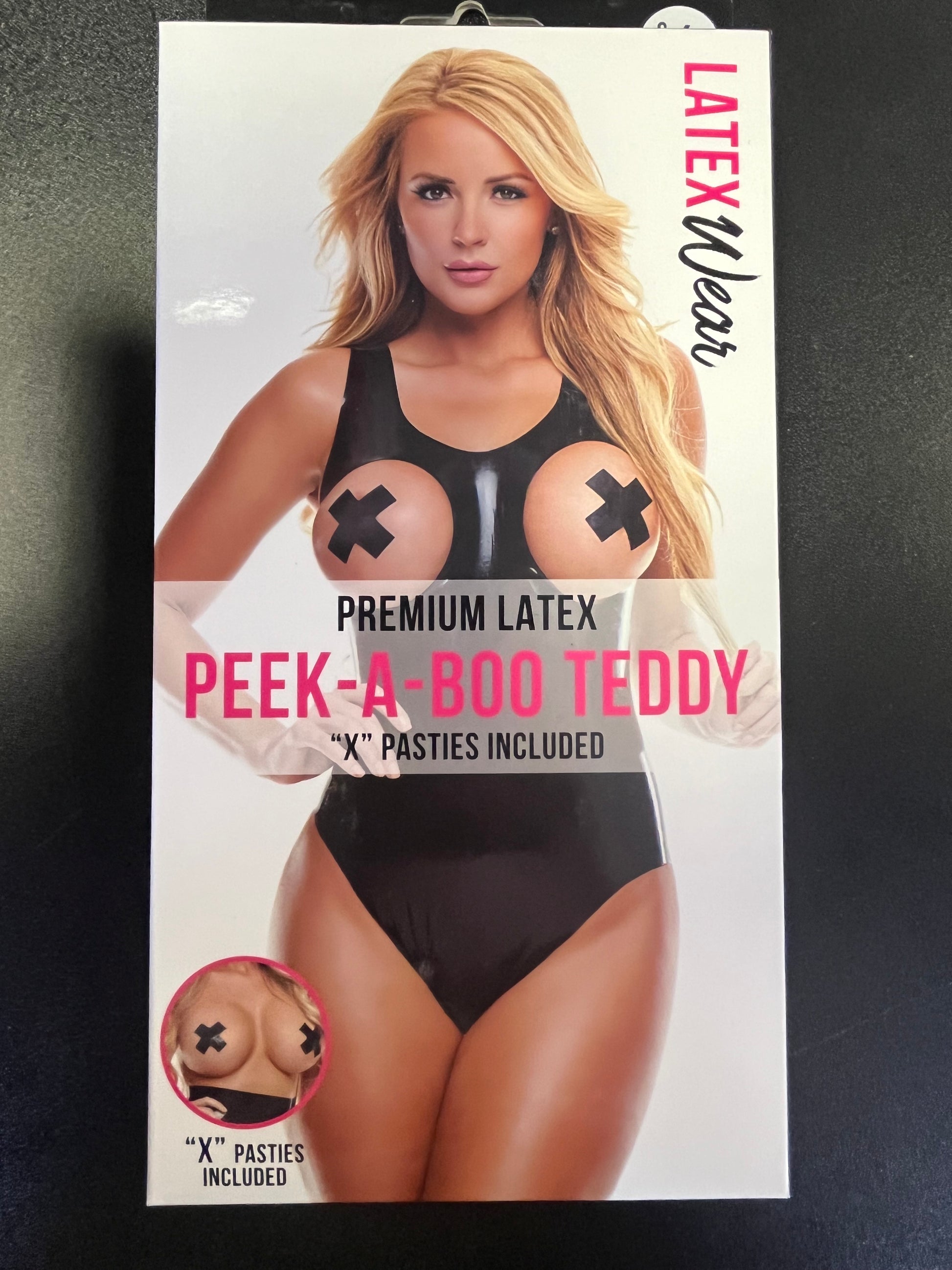 Experience the sensual and daring confidence of our Latex Wear Teddy. Made of high-quality latex, it hugs your curves and accentuates your figure. With a daring breast cut out design, this teddy is perfect for intimate moments. And as a bonus, enjoy free pasties to complete your look. Get ready to make a statement in this sexy and empowering piece!