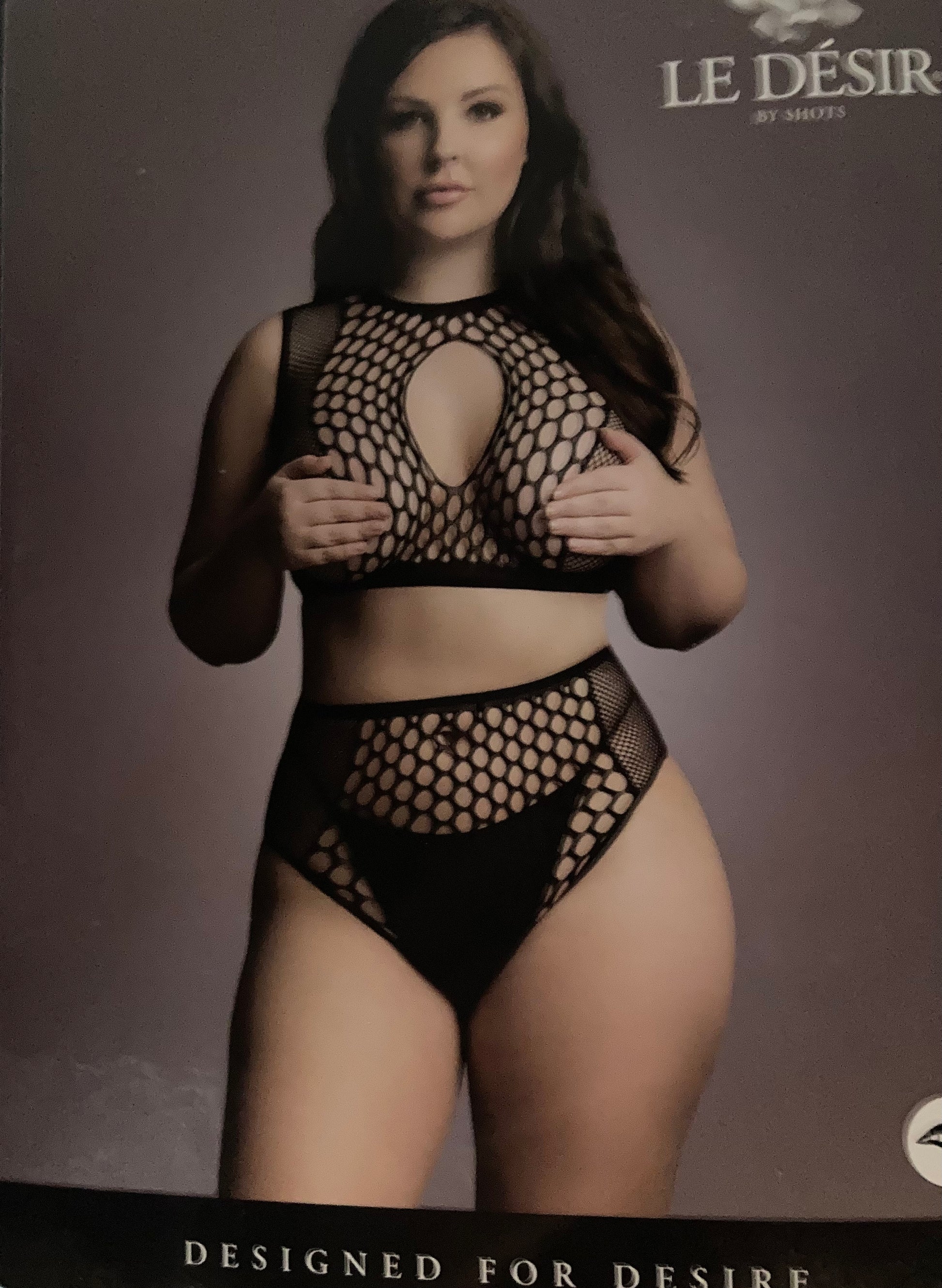 Standout in style with our Le Désir Duo Net Key-Hole Black Bra 2pc Set QS. This fierce two piece set combines fishnet and fence net with a seductive keyhole cutout to showcase your curves. Hand washable and suitable for most body types. (P.S. Thong not included, but you won't even miss it.)