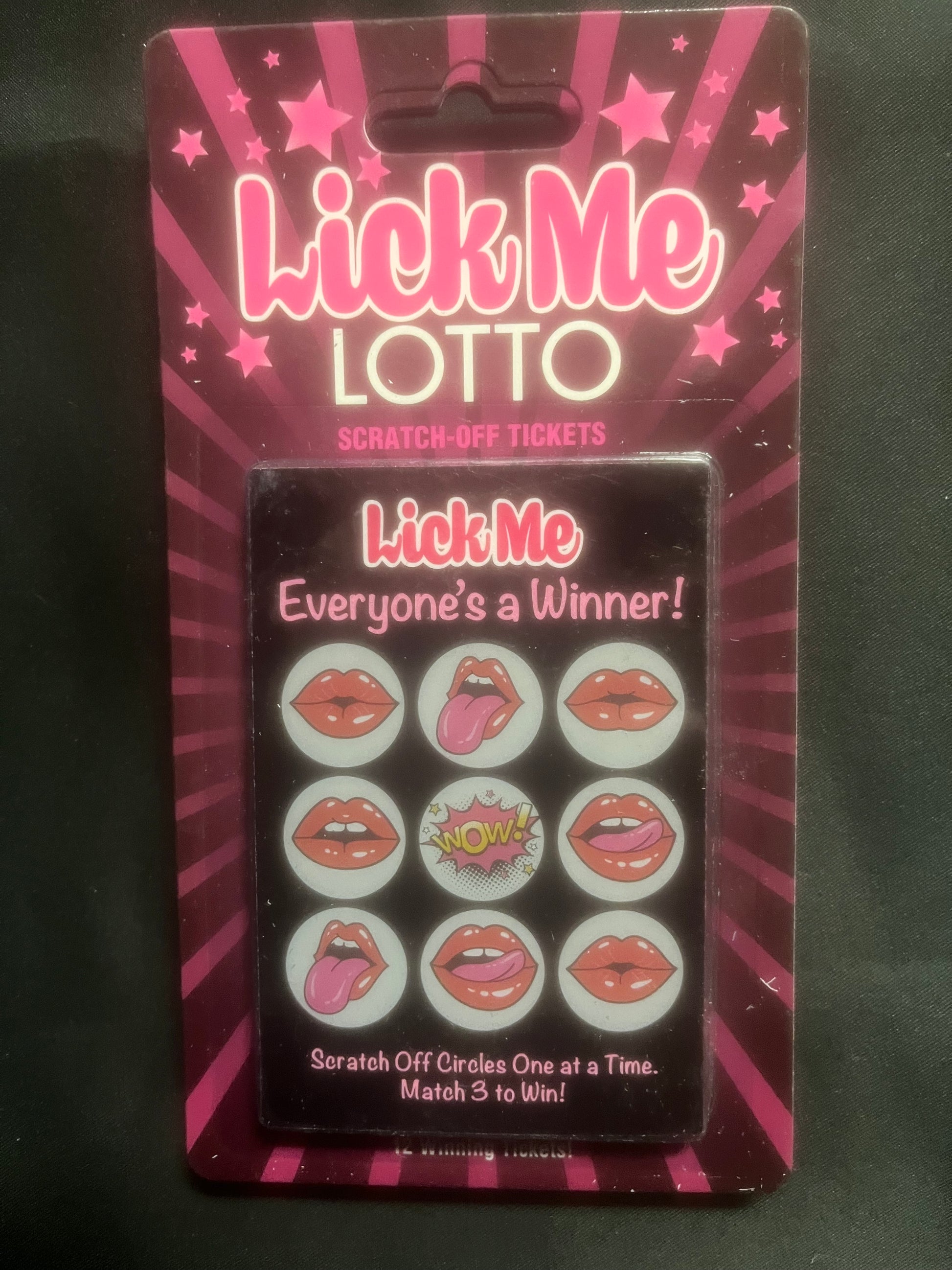 Indulge in pure pleasure with the Lick Me Lotto Scratch Card Game. This sexy and scandalous set features playful acts hidden beneath the film for an erotic game of chance. Surprise your partner with a hidden ticket and let the fun begin whenever the mood strikes. Comes with 12 tickets.