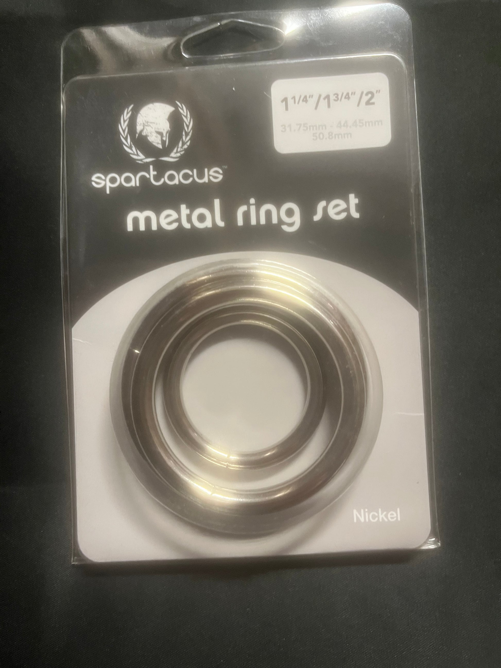 Discover the ultimate in pleasure and security with our Metal Ring Set. Made of sturdy silver nickel, these cock rings offer three size variations for customizable constriction. Their weighty feel adds an extra layer of stimulation. Whether using one or all three, you're sure to have an unforgettable ride. (Lube recommended.)
