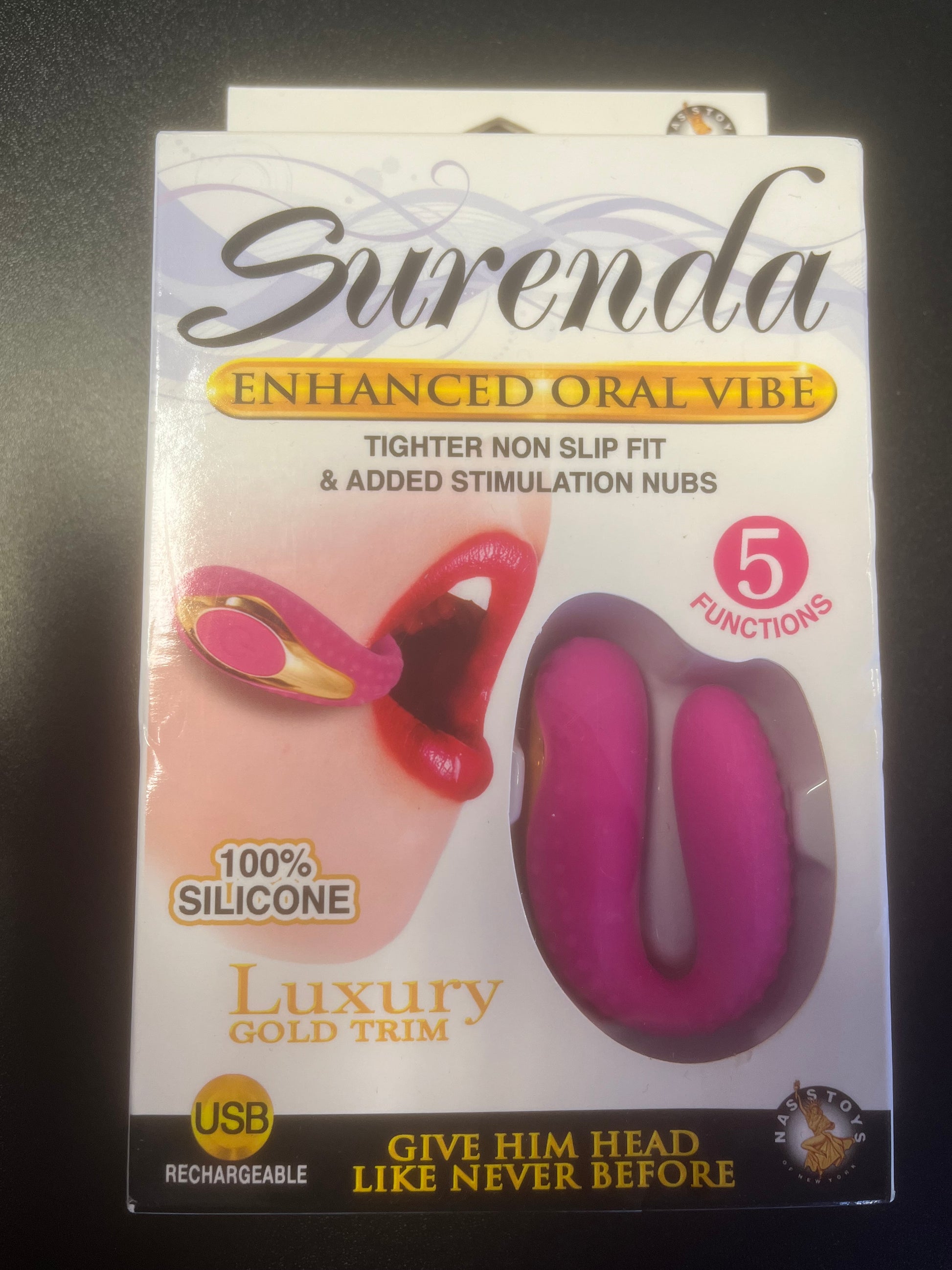 Experience enhanced pleasure with the NassToys Surenda Oral Vibe! This revolutionary product is rechargeable and features 5 vibrating functions while being able to be worn in your mouth while giving oral. Say goodbye to traditional oral and hello to a new level of pleasure!