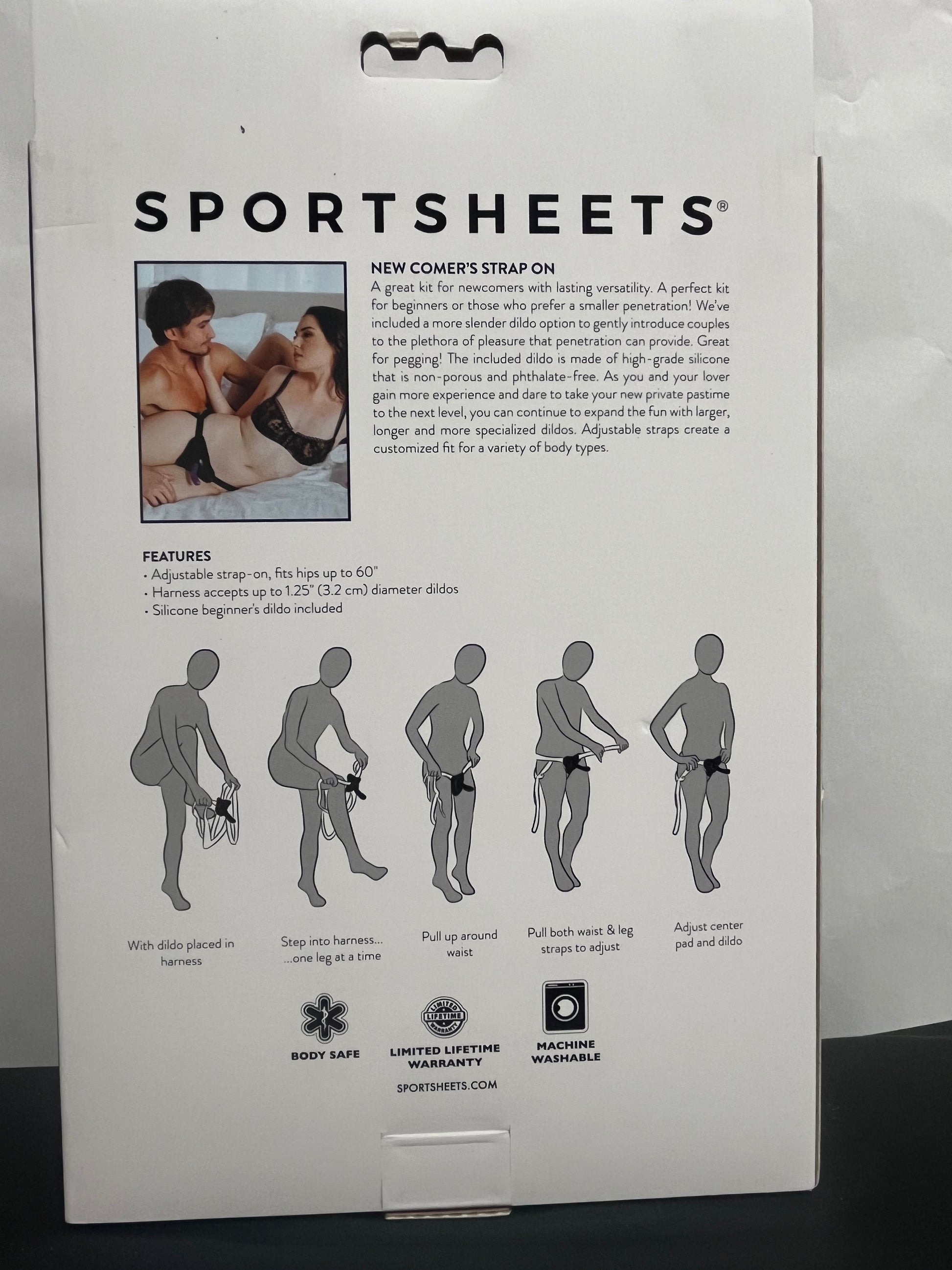 The New Comers Strap-On & Dildo Set from Sportsheets is a perfect choice for beginners or anyone looking for a simple, yet sexy harness. Made with soft nylon straps and a snug fit, it's easy to step into and provides a secure hold for the included Please silicone dildo. Upgrade to a bigger toy up to 1.25 inches in diameter for even more pleasure.