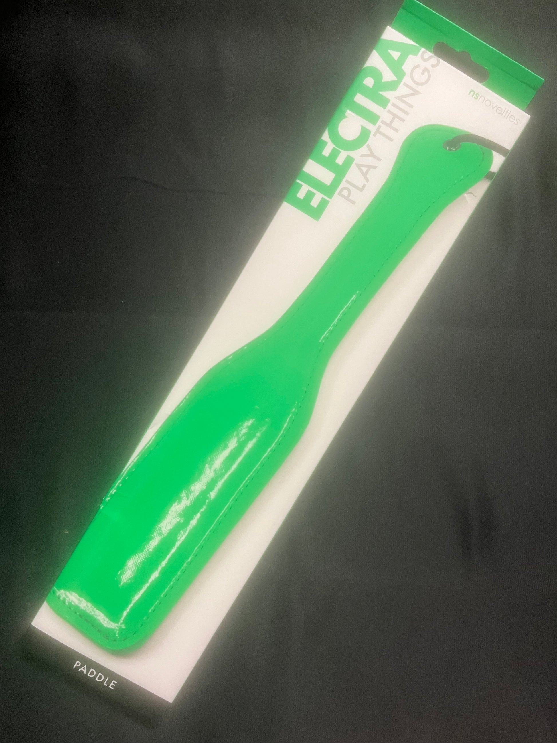 Experience the ultimate pleasure with the NS Novelties Electra Play Things Paddle. Enjoy precise and playful stings with this sturdy, yet slightly flexible paddle. Keep it close with the long wrist cord. Made from synthetic patent PU, clean up is easy with a toy care fluid or warm soapy water. Indulge in the sensation of this perfectly firm tool in yours or your partner's hands!
