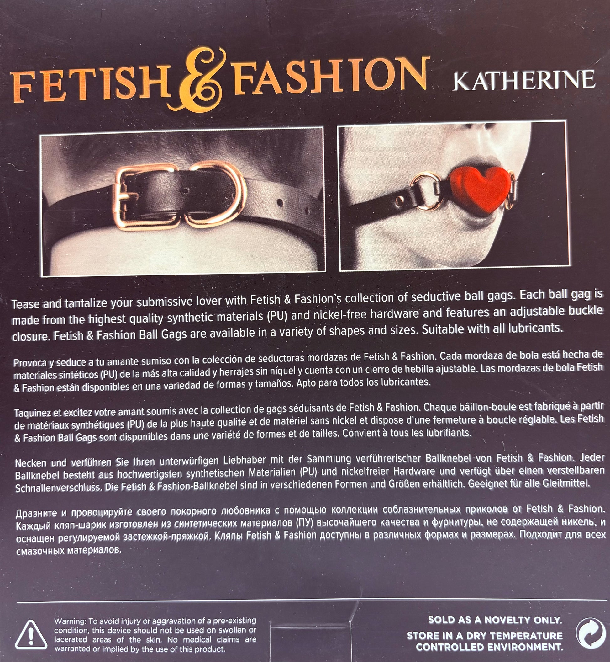 Experience the thrill of dominating your partner with NS Novelties Fetish & Fashion's Katherine Heart Gag. Made with vegan leather and a solid silicone heart, this bondage gear keeps your partner silent and obedient. With a secure buckle and comfortable design, enjoy the control and excitement this gag brings.