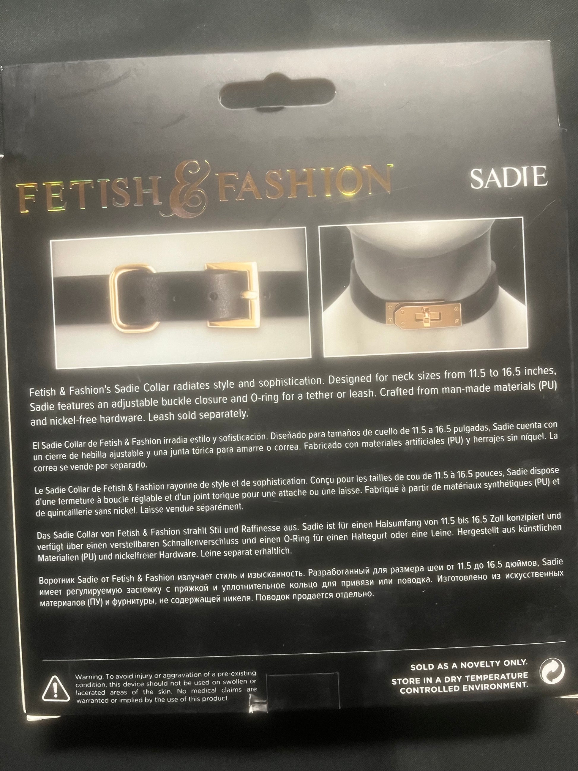 Embrace your desires with the NS Novelties Fetish & Fashion Sadie Collar. Made of soft and supple vegan leather, this collar is perfect for both control and style. Featuring beautiful rose-gold hardware and an adjustable buckle, use it with a leash or pair it with your favorite outfit. Spot-clean as needed. Fits necks 11.5-16.5 inches.