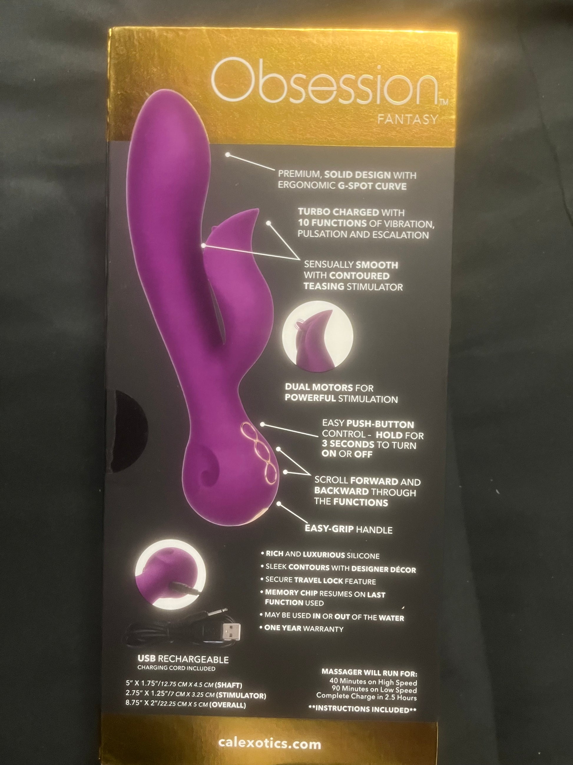 The Obsession Fantasy Rabbit Vibe from CalExotics is a perfect example of the high quality and innovative products found in the Obsession collection. Its specially designed shape and powerful motor make it ideal for targeting sensitive erogenous zones, while the ten vibration modes and unique flickering stimulator provide intense pleasure. The hypoallergenic and body-safe materials ensure a comfortable experience, and it is also easy to clean and rechargeable for endless playtime. For optimum performance, use with a water-based lubricant and avoid contact with silicone formulas.