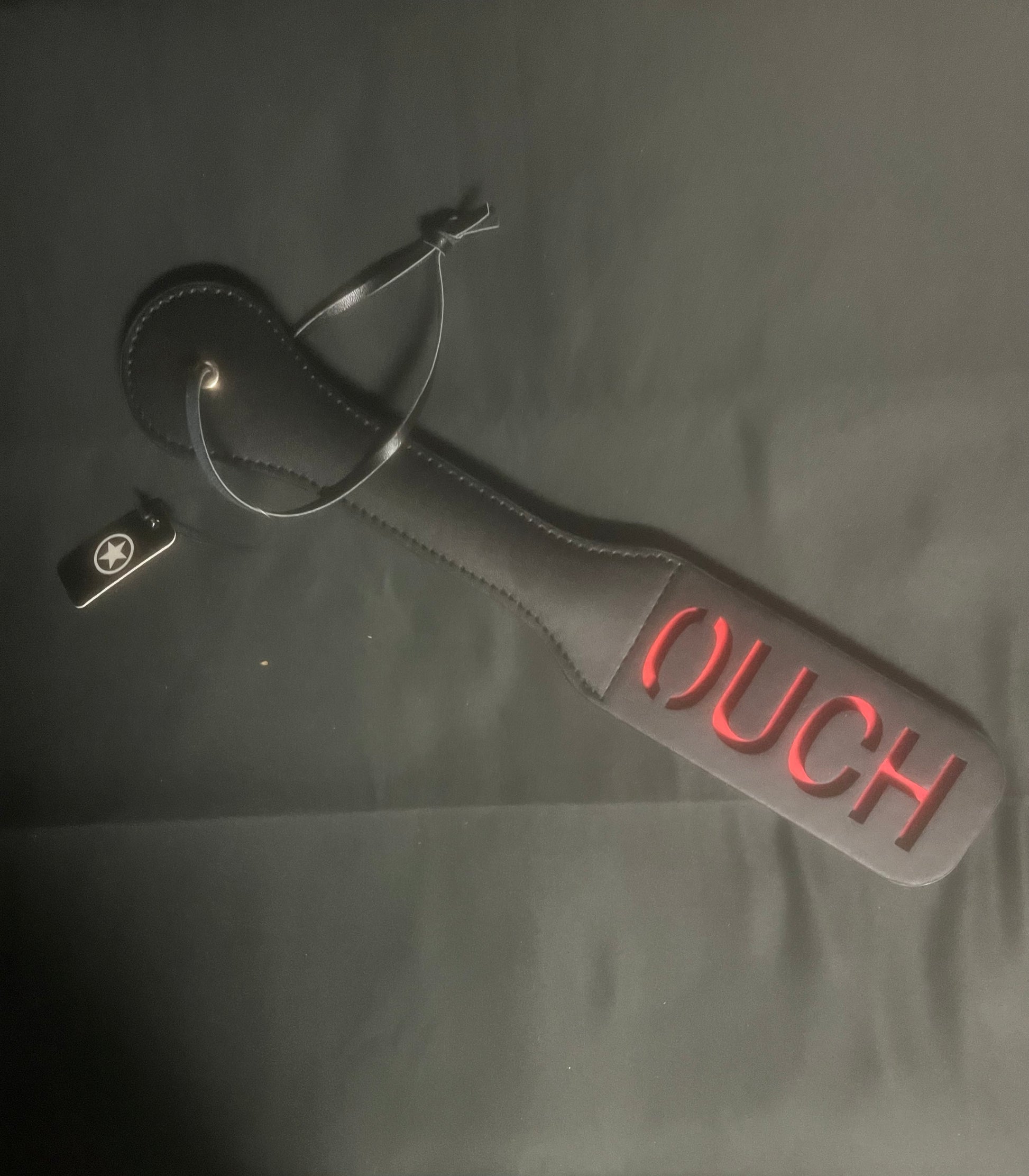 Add some playful punishment to your BDSM play with Ouch! OUCH Paddle. Flexibility and precise stinging are guaranteed with the split design and laser cut lettering. Made of faux leather, this paddle is perfect for both soft and intense play.