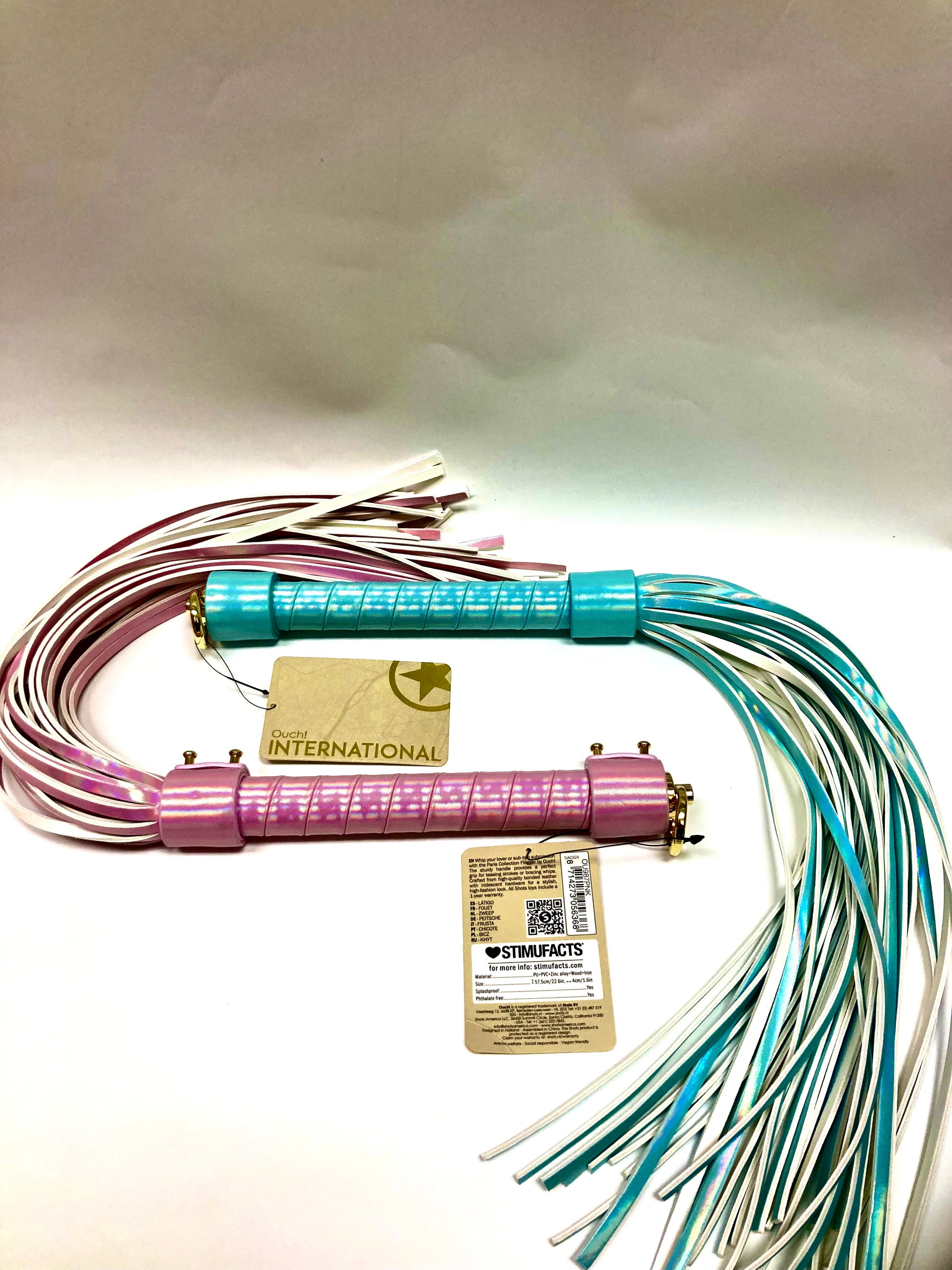 Discover a stunning twist on a classic with the Ouch! Paris Collection Flogger. Crafted with shimmery, bonded leather tails, this sleek and swishy flogger can tickle, slap, and sting in all the right ways. With a sturdy handle for ultimate control, this flogger is both practical and beautiful. Measures 21.5"/55cm.