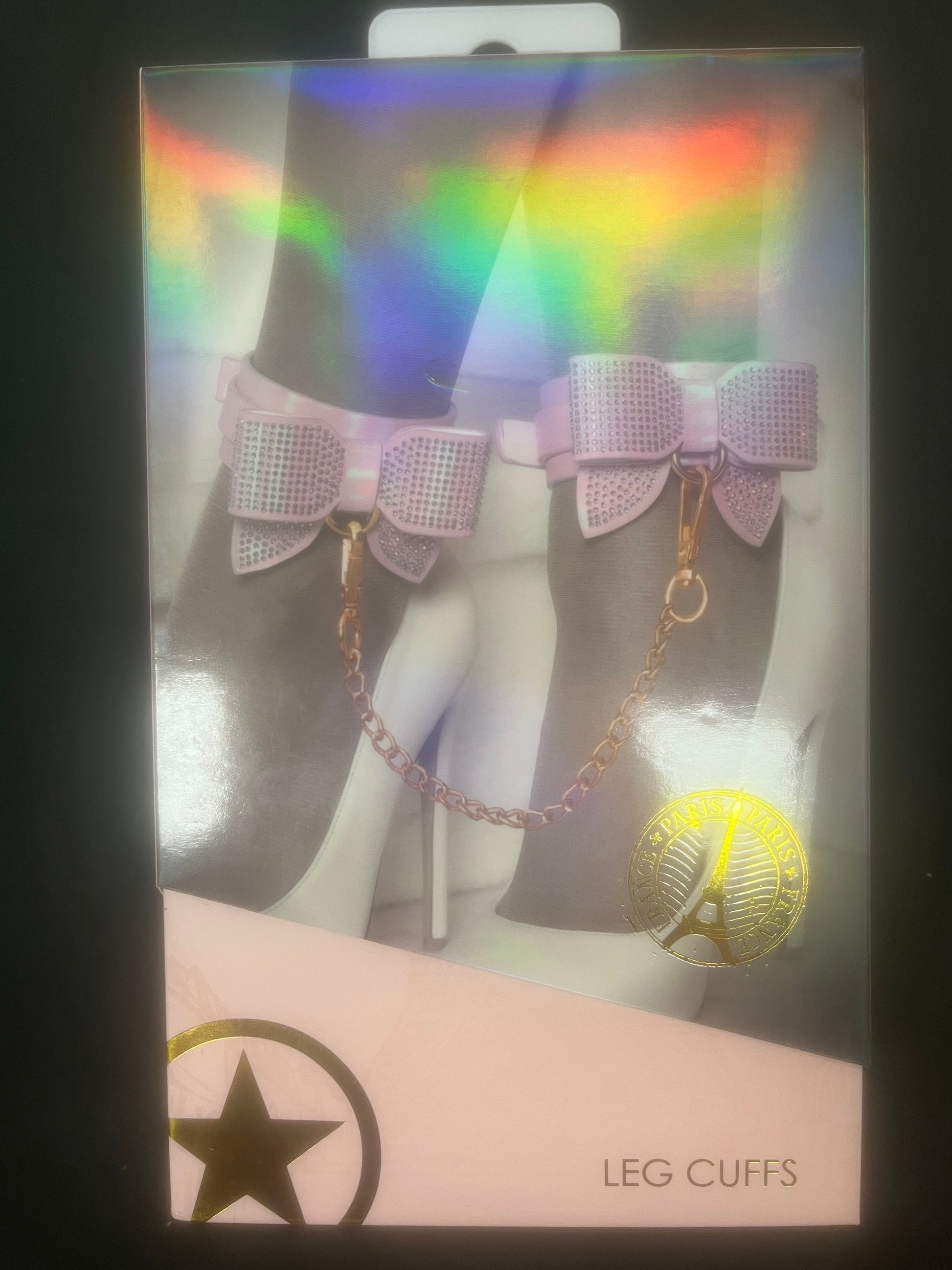 Add an extra touch of luxury to your bondage play with the Ouch! Paris Collection Leg Cuffs. The shimmery vegan leather, delicate bows, and sparkling crystals will take your restraint game to the next level. These cuffs are not only stylish but also secure, with sturdy metal O-rings and an adjustable fit for ankles up to 4.5 inches. Use them with the included connector or your own compatible gear for endless possibilities. Easy to clean for endless use.