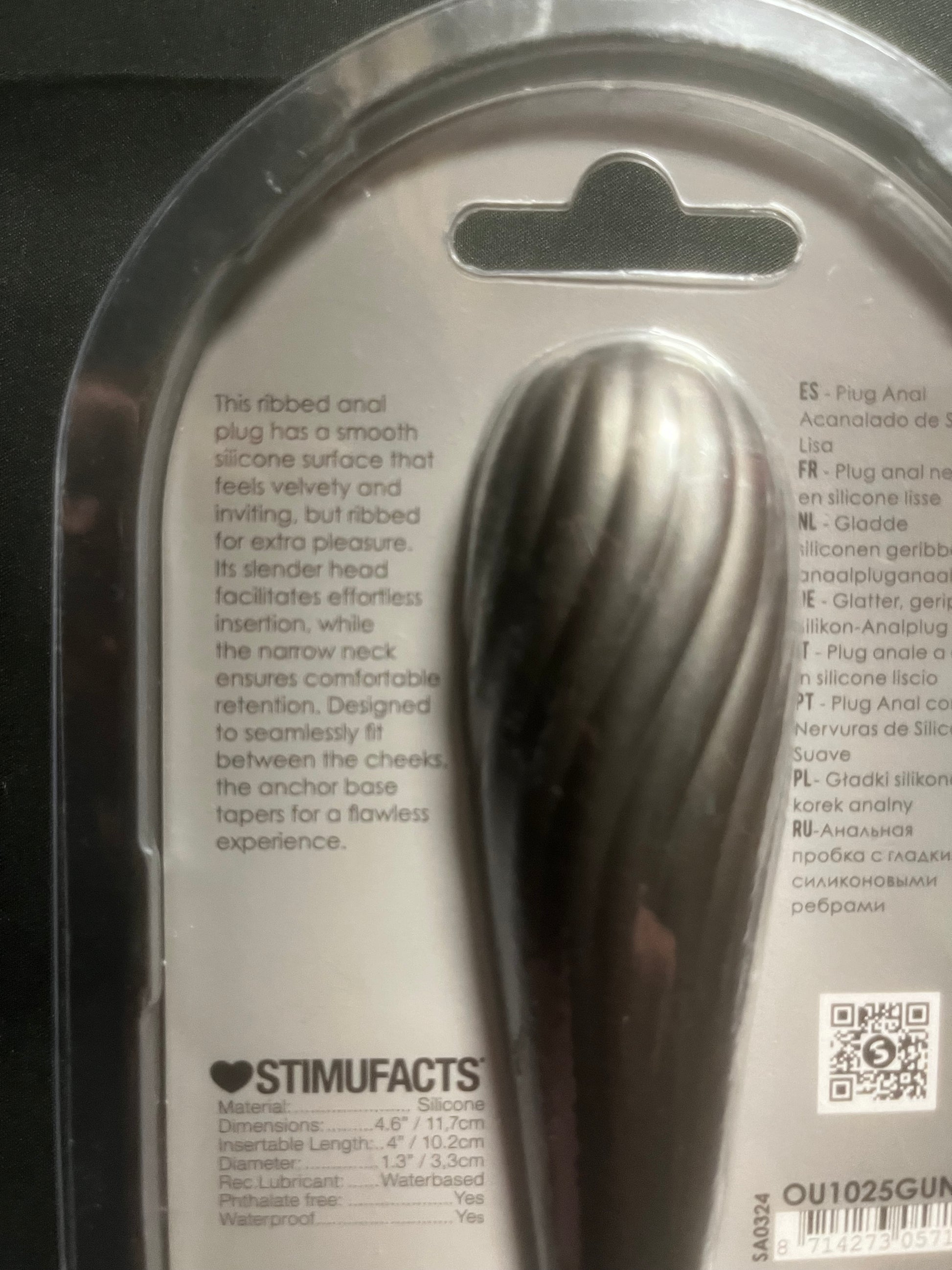 Indulge in deep, stimulating sensations with Ouch!'s Smooth Silicone Ribbed Butt Plug in Gun Metal. Its flexible neck allows for versatile positioning, while the wide base ensures stability and protection. Crafted from pure silicone with a metallic shimmer, this plug adds both pleasure and luxury to your sex life.