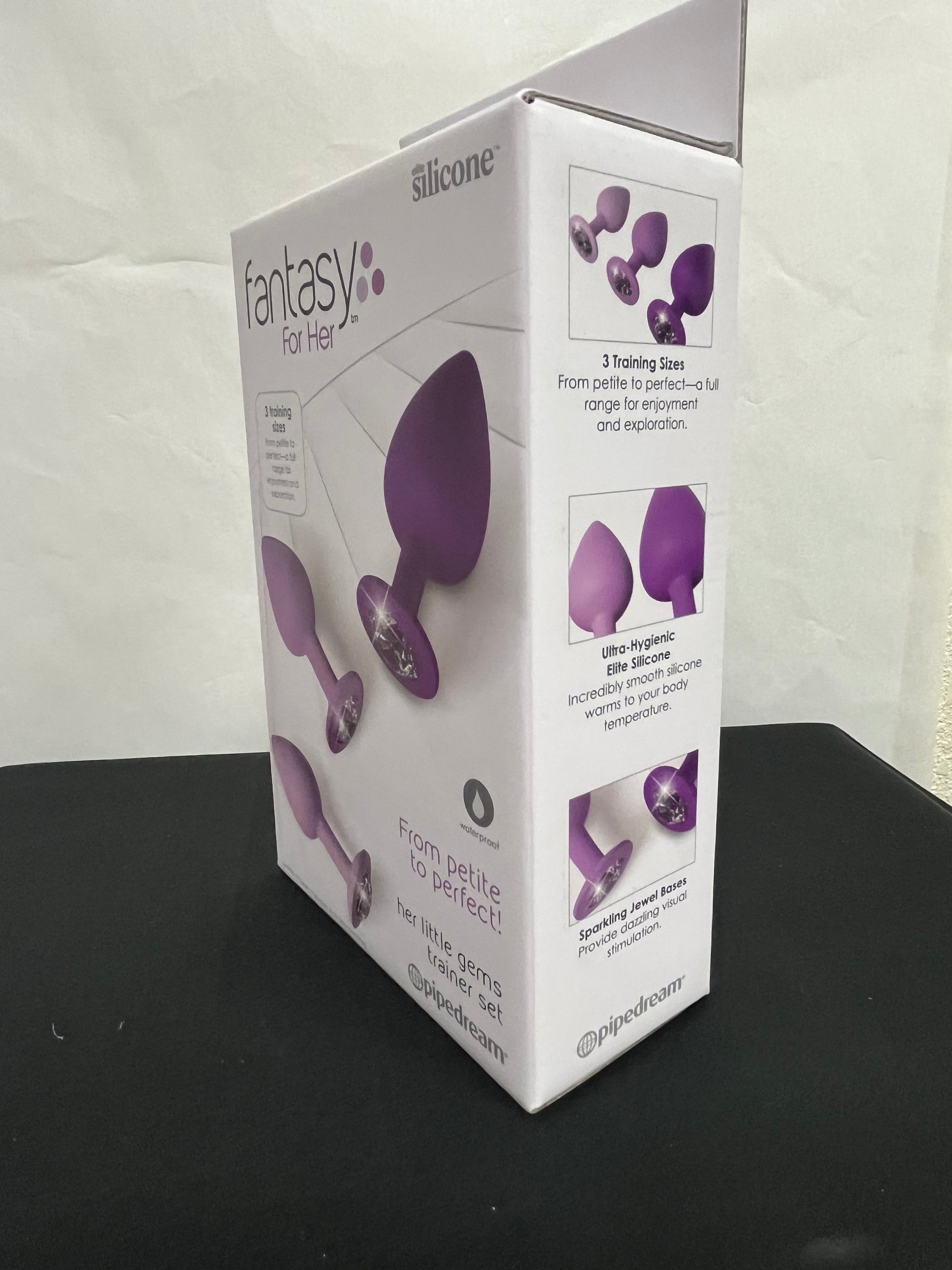 Get ready for bigger and better anal play with Pipedream Fantasy For Her Little Gems Anal Trainer Set. This sleek and sexy set includes three different sizes of silicone plugs, each featuring a glittery gemstone base. Whether you're a beginner looking to expand your pleasure or a seasoned pro, these plugs are perfect for stretching, stimulating, and satisfying. Say goodbye to discomfort and hello to pleasure with this must-have set.