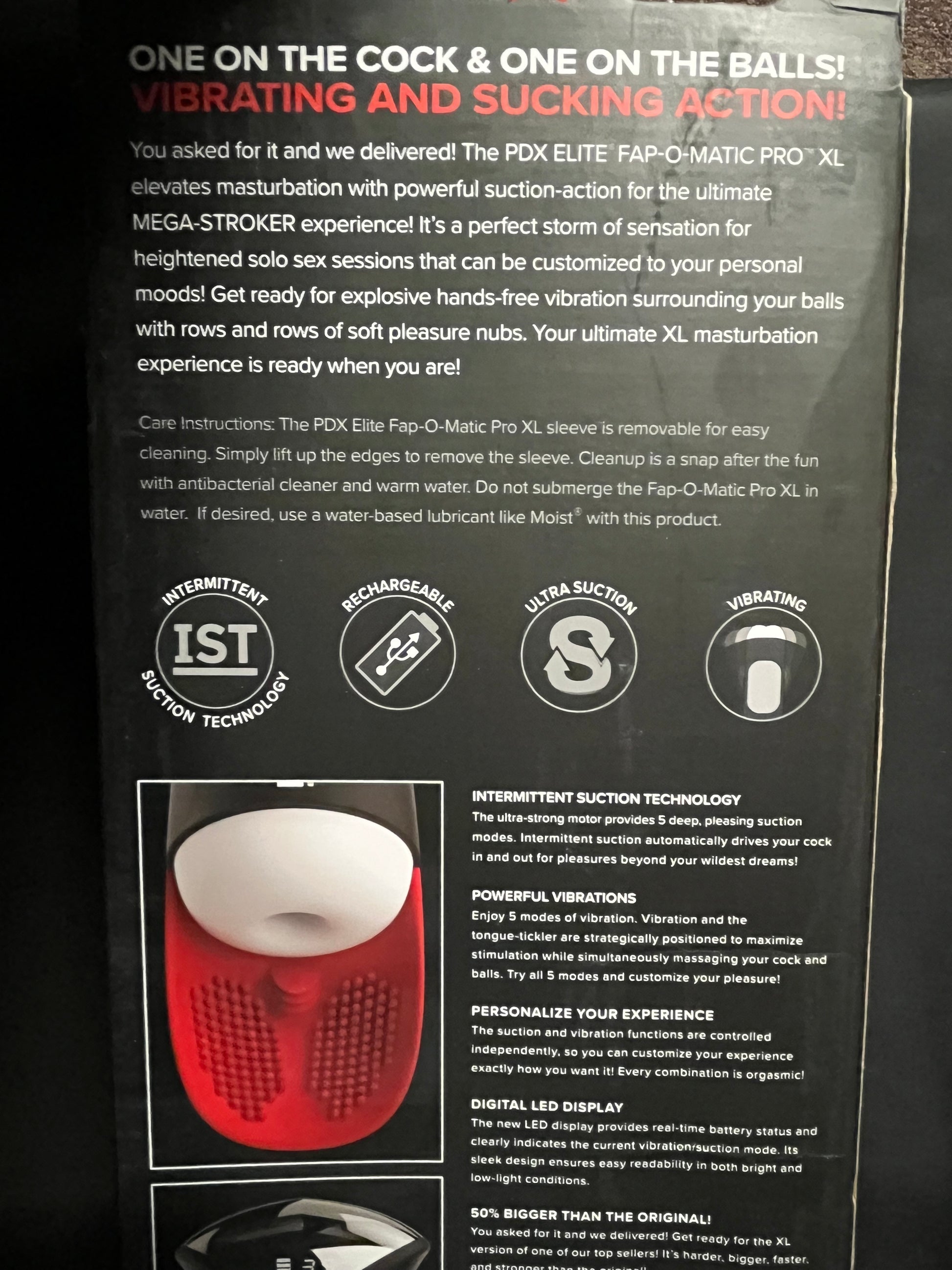 Experience the ultimate pleasure with the Pipedream PDX Elite Fap-O-Matic Pro XL Suction Stroker. Bigger, longer, faster, and stronger than the original, it offers five vibration modes and five powerful suction settings for customizable sensations. Dive up to 6.5" into its ultra-soft Fanta Flesh sleeve, textured to deliver intense stimulation, while a giant silicone tongue teases your most sensitive areas. Separate controls let you mix vibration and suction to your liking. Easy to clean and compatible with water-based lubricants, this stroker is designed for maximum satisfaction and convenience.
