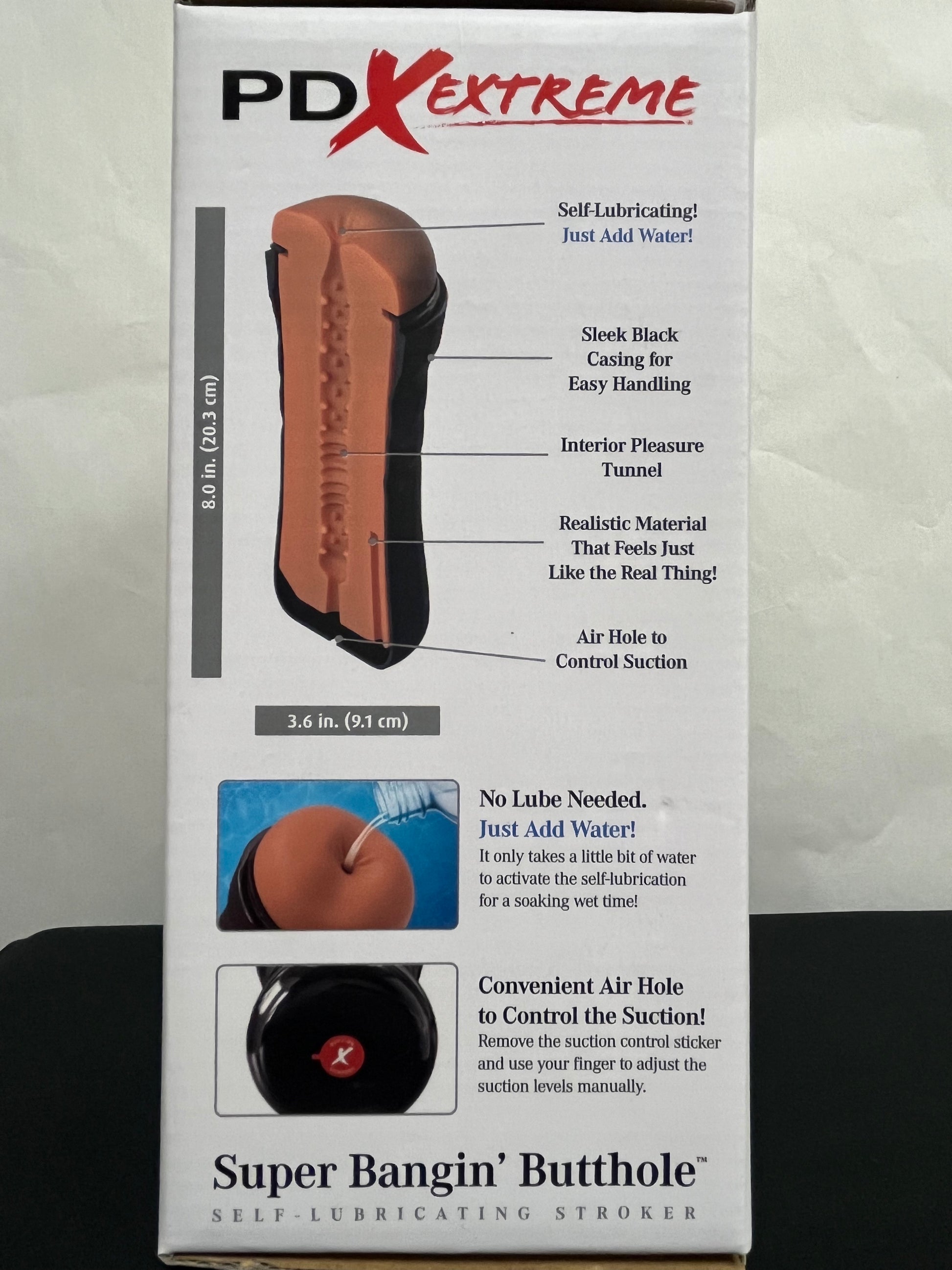 Experience the magic of the PipeDream PDX Wet Bussies Super Bangin' Butthole Stroker. Activate the self-lube feature with just water or saliva for a slippery and tantalizing playtime. The phthalate-free Fanta Flesh material and suction control option make this 8" penetrable stroker a must-have with any water-based lube.