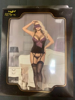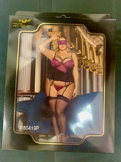 Get ready to turn heads with this Purple Lace bustier, complete with strappy garter and a matching panty to complete the look!