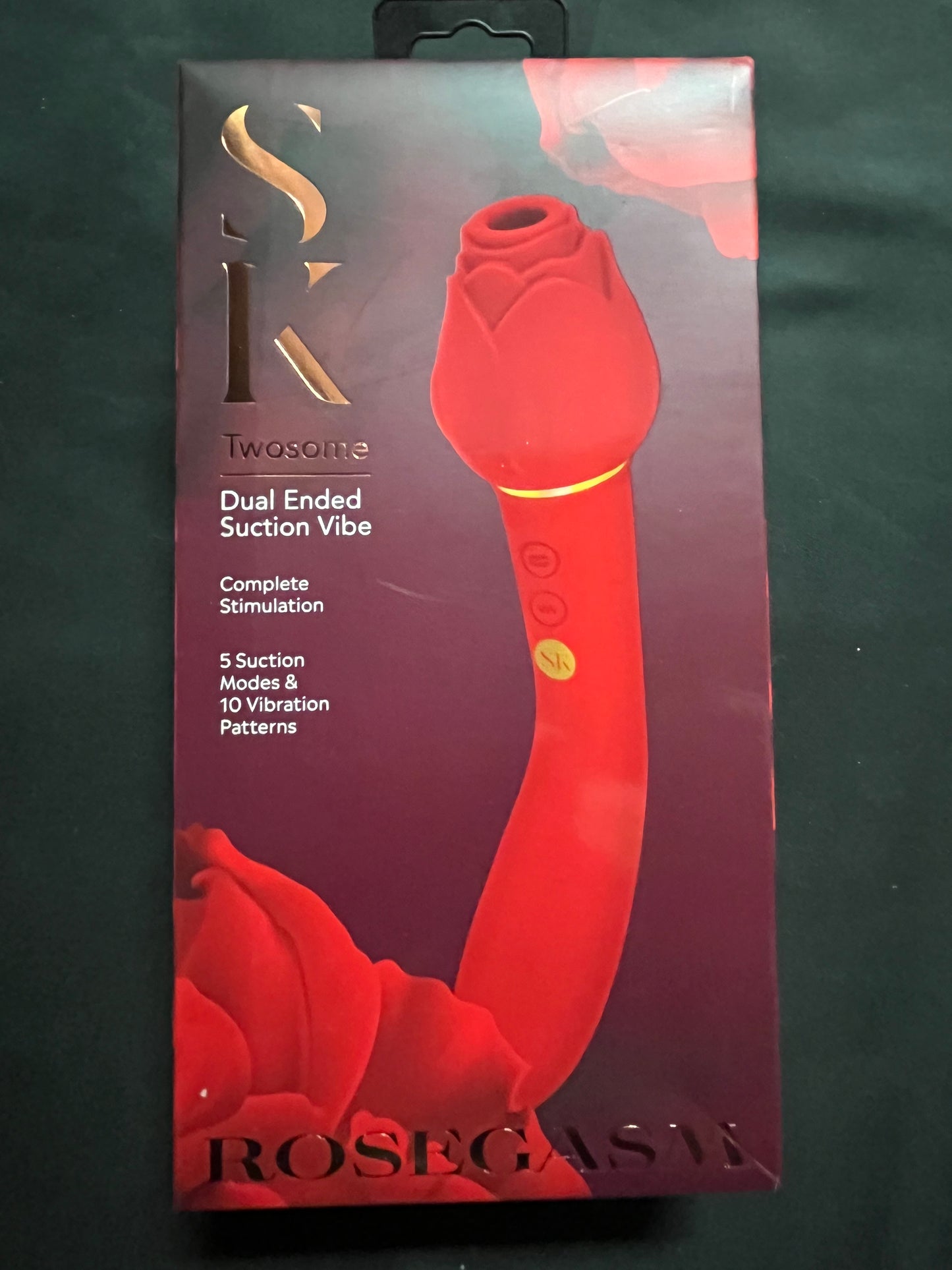 The Rosegasm Twosome provides a unique experience with two sides for exploration. With a red rose on top and a versatile penetrator or precision vibe below, this toy offers stimulation for both inner and outer erogenous zones. It boasts five modes of sweet air pulse suction and ten modes of classic vibration, making it perfect for targeting clitorises, nipples, penises, g-spots, and prostates. Made of body-safe silicone, it is hypoallergenic and easy to clean, and can be used with any water-based lubricant. Rechargeable with a USB cord included, this toy is splash-proof but not meant to be fully submerged.