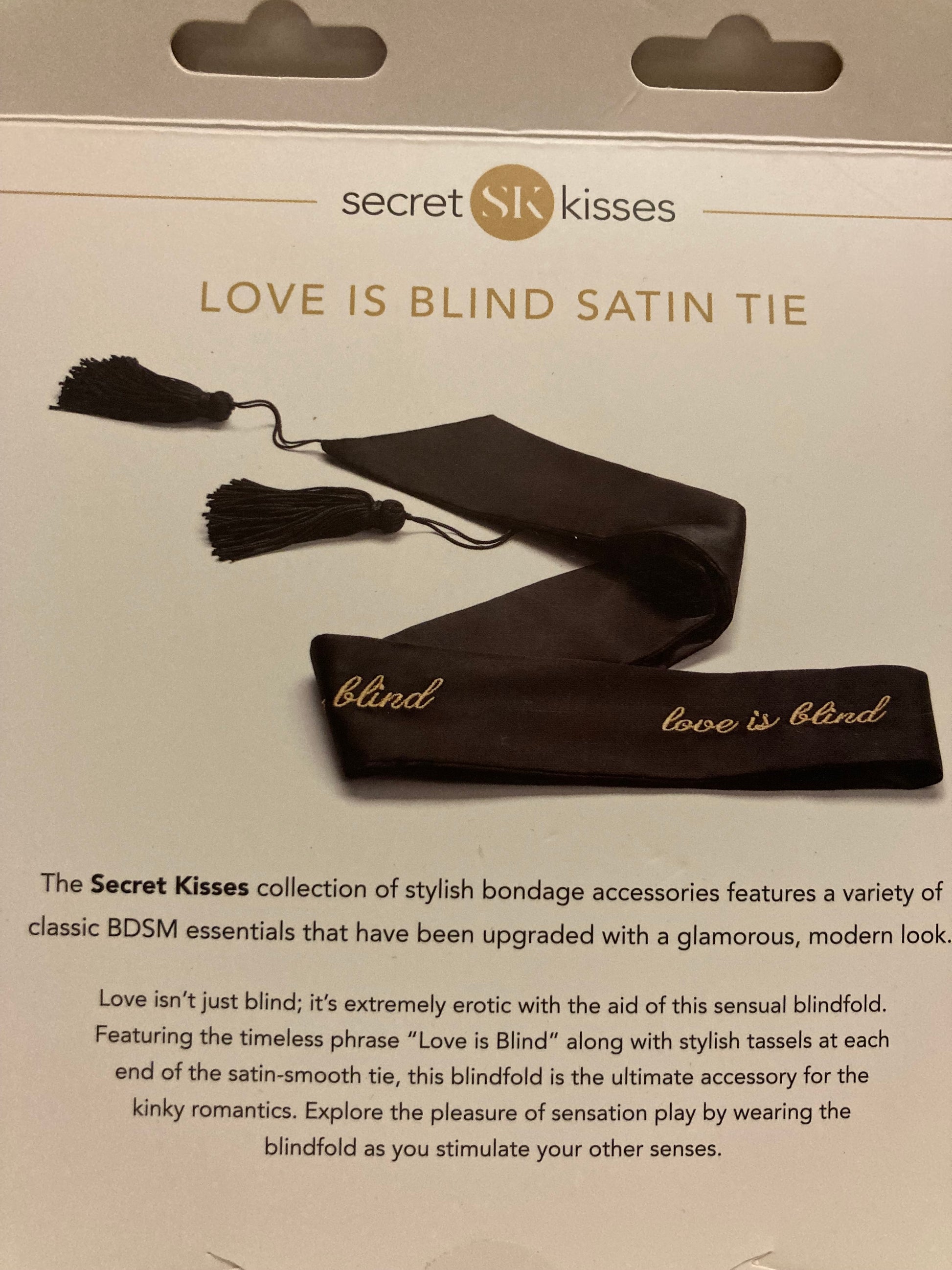 Discover a new level of sensory deprivation with Secret Kisses Love Is Blind Satin Tie. The ultra soft, silky black fabric ensures a secure and comfortable fit over the eyes, allowing for light-blocking or teasingly sexy play. Use it to add anticipation or to restrain wrists or ankles - the options are endless.