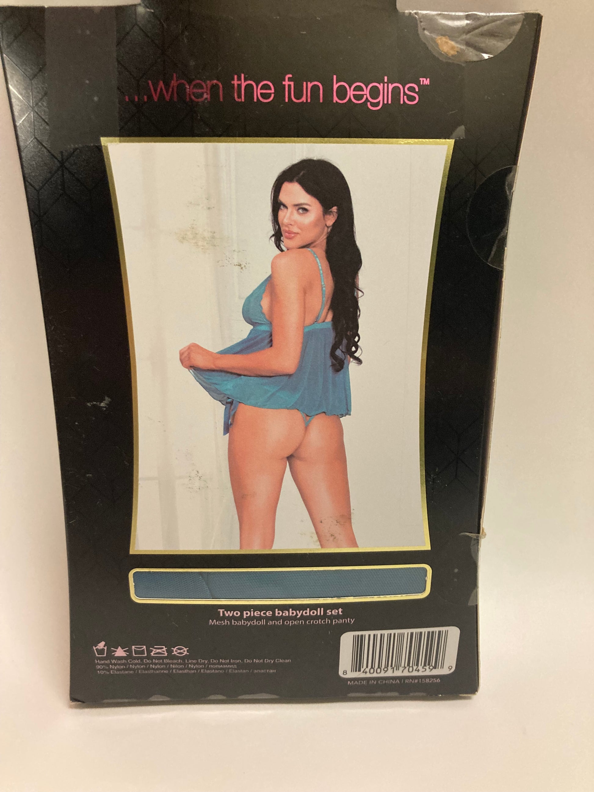 Seven 'til Midnight Mesh Who? Two Piece Teal Babydoll Set