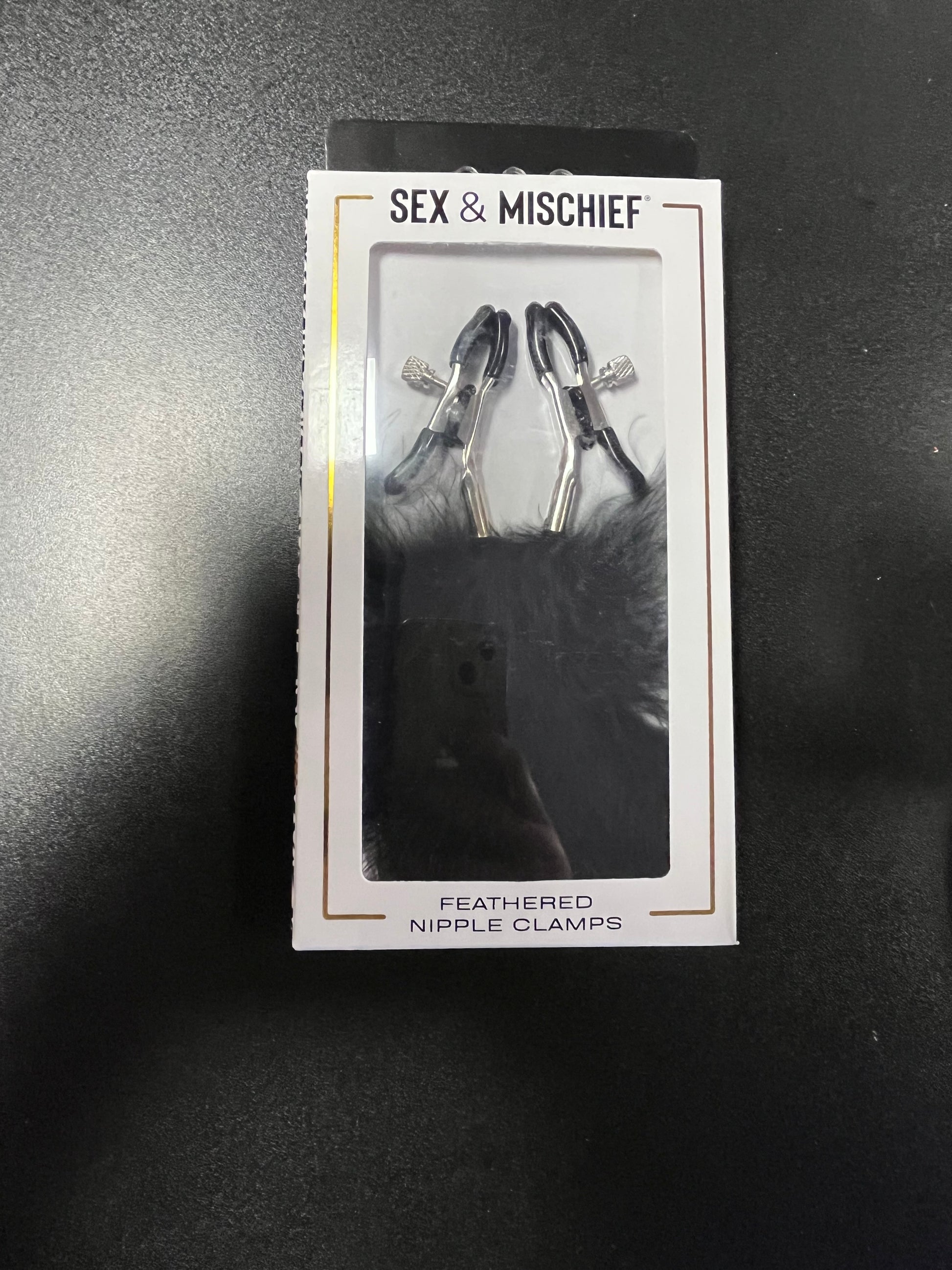 Elevate your intimate moments with the Sex and Mischief Feathered Nipple Clamps. These adjustable metal clamps, tipped with smooth rubber for comfort, allow you to customize the perfect grip and heighten sensitivity. The soft black rooster feathers add a tantalizing visual and tactile element, captivating your partner while intensifying pleasure. Nickel-free and designed for both comfort and excitement, these clamps bring a seductive touch to your play.
