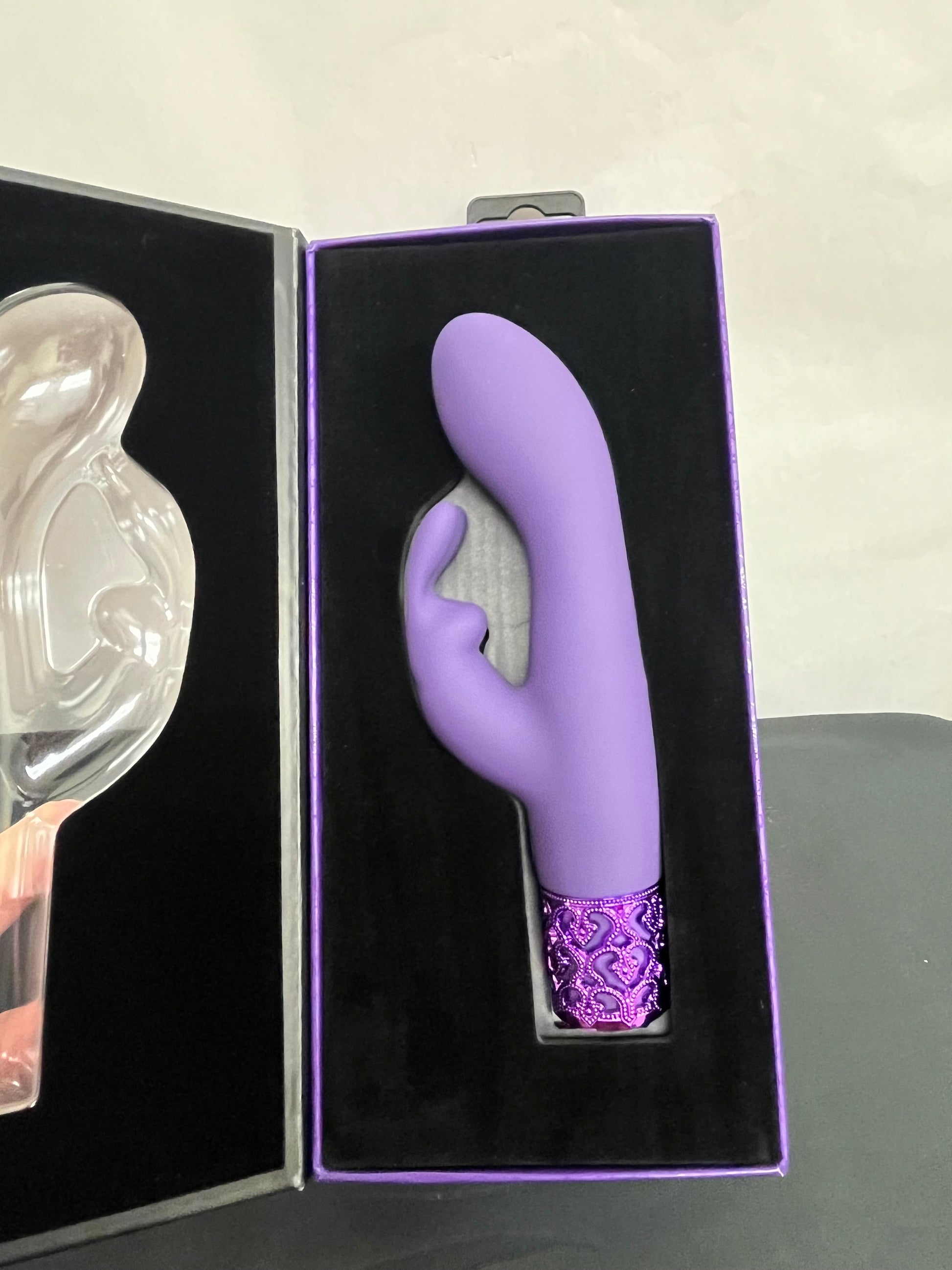 Experience perfect harmony with the Shots Toys Royal Gems Rabbit Vibe! With two powerful motors, this silky silicone vibe stimulates both inner and outer sweet spots. Choose from 10 vibration modes and easily control with a single button. Hypoallergenic and easy to clean, this USB rechargeable vibe is a must-have for your pleasure collection.