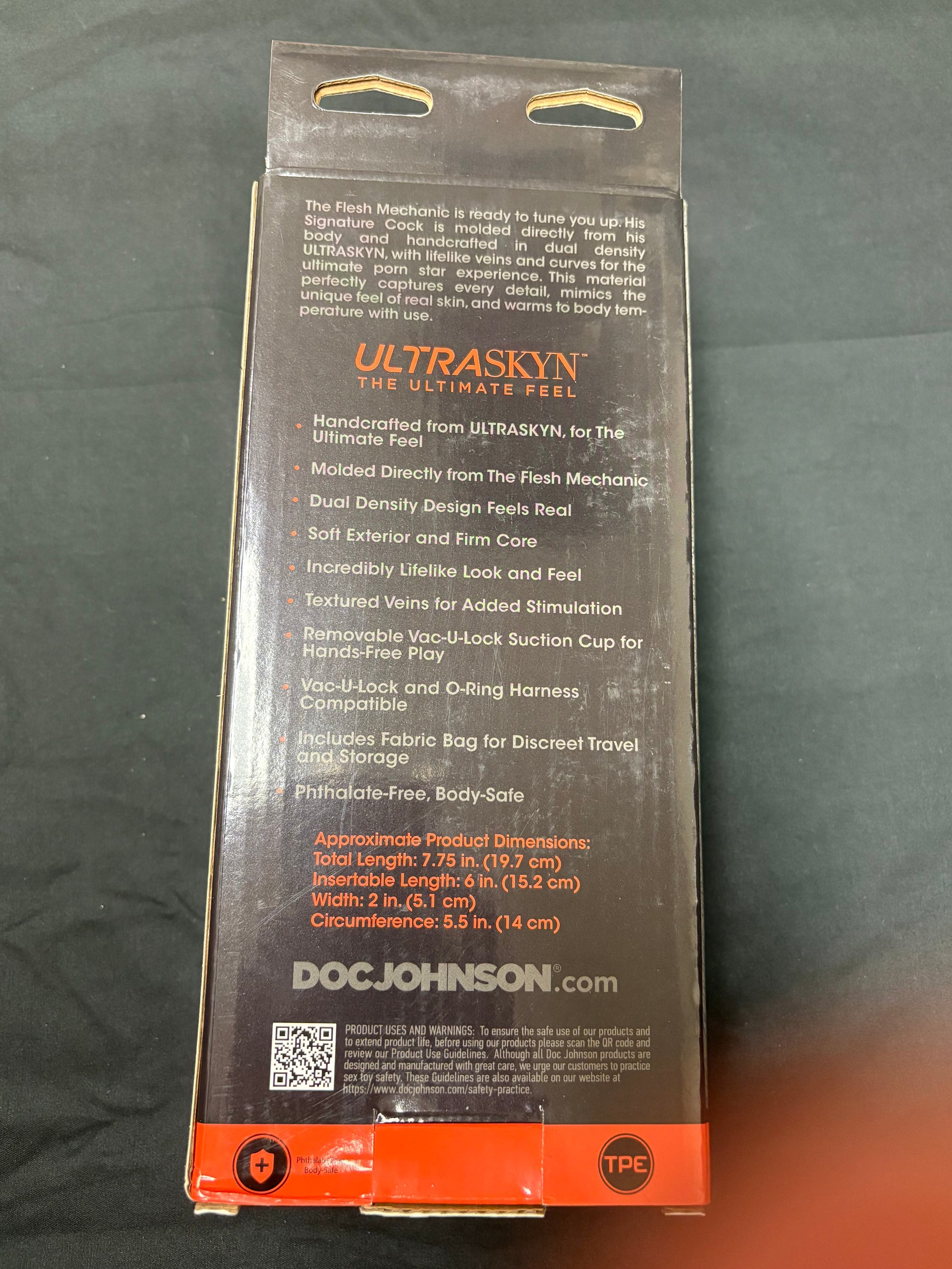 Experience unmatched realism with the Signature Cocks The Flesh Mechanic 7.5 Inch Cock, crafted to mirror your fantasy perfectly. Made from Doc Johnson's ULTRASKYN material, it offers a soft, lifelike feel on top with a firmer base that warms to your body temperature. Featuring a smooth tip and squeezable balls, it delivers authentic pleasure. Use the included Vac-U-Lock suction cup for hands-free fun or swap it with any compatible accessory. Easy to clean and phthalate-free, this body-safe toy pairs perfectly with water-based lubricants for a satisfying experience every time.