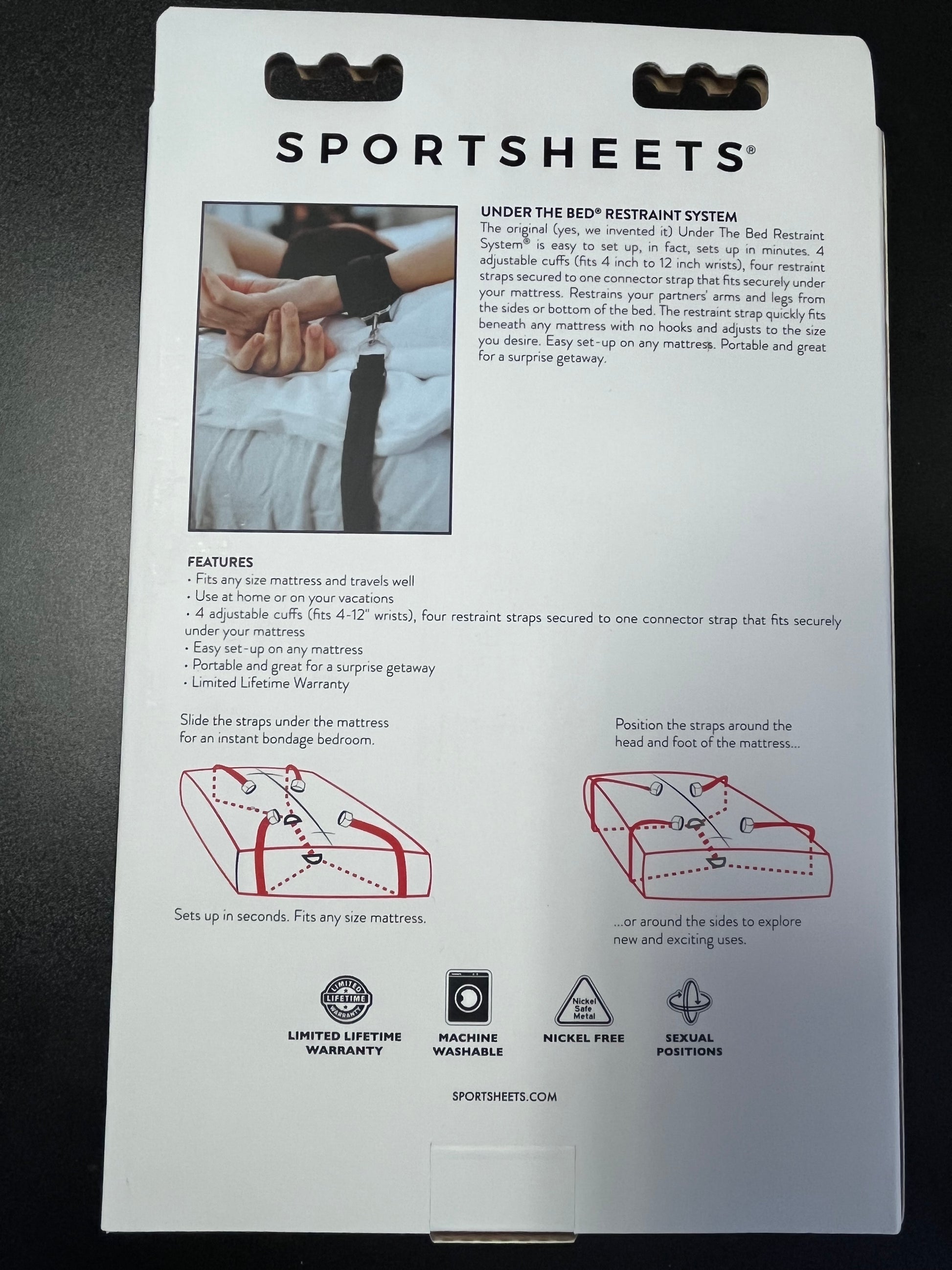 Introduce some playful restraint into the bedroom with Sportsheets Under the Bed Restraints. The user-friendly design allows for customizable playtime, with sturdy tethers and soft cuffs that hold you or your partner securely in place. Perfect for beginners and aficionados alike, this versatile pleasure system will add a sexy edge to your intimate moments.