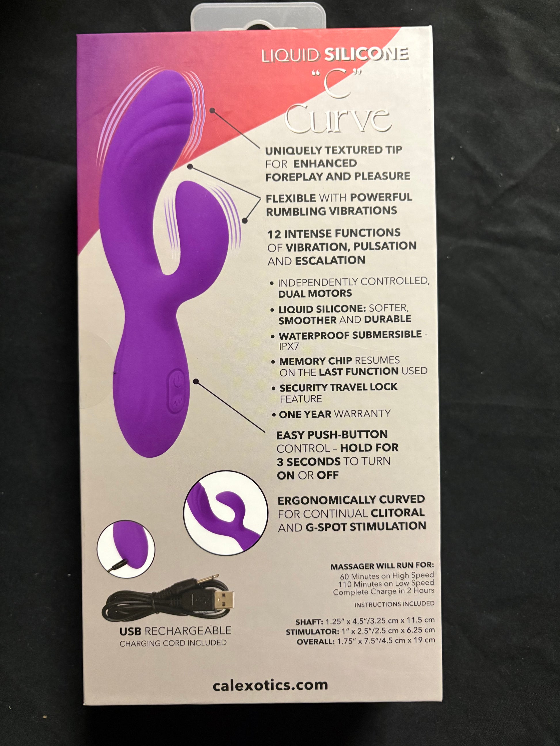 The Stella "C" Curve Rabbit Vibe is designed to deliver intense pleasure with its extra-curvy shape made for deep, targeted sensations. Featuring twelve rumbly vibration modes, you can mix and match powerful shaft vibes with lighter outer tickles using dedicated controls. Crafted from hypoallergenic liquid silicone, it’s body-safe, easy to clean, and built to last. Perfect for solo fun or shared adventures, this playful vibe flexes to find all your favorite spots and keep the pleasure flowing.