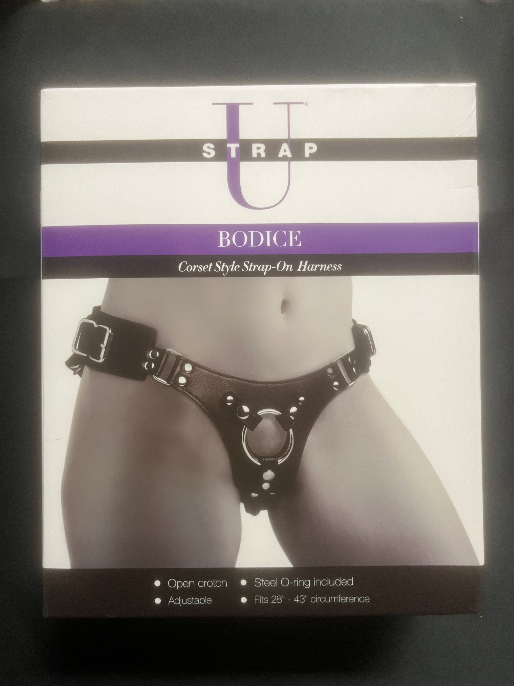 Take your strap-on game to the next level with the Strap U Bodice Corset Style Strap-On Harness. This elegant harness comes fully assembled and is easy to adjust to your perfect fit. Featuring a pin-up style corset lacing on the back and a steel O-ring on the front, this harness is both stylish and functional. Made from midnight black vegan leather, it's perfect for a night of passion. Dildo not included.
