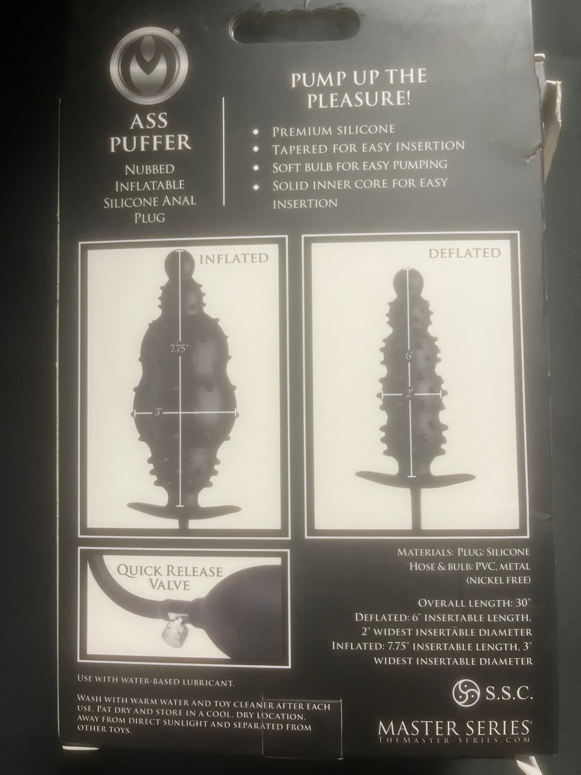 Experience ultimate pleasure with the XR Brands Master Series Ass Puffer Nubbed Inflatable Anal Plug! Its firm contours and nubbed texture will hit all the right spots, while the attached pump allows you to customize the size to your liking. Made with hypoallergenic materials, it's easy to clean and perfect for any lube. Don't miss out on this incredible sensation, grab yours now!
