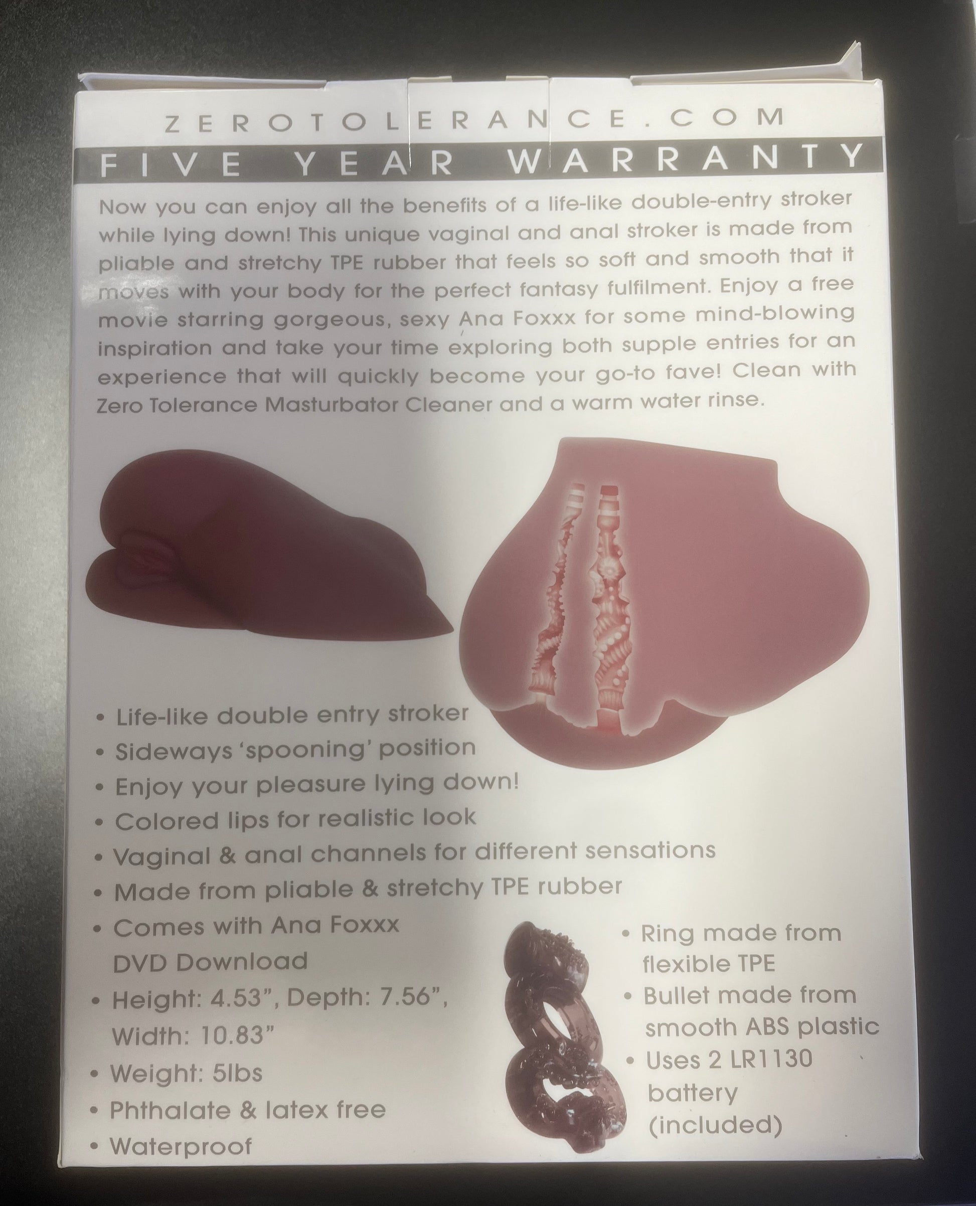 Experience ultimate pleasure with the Zero Tolerance Ana Foxxx Side Ass Stroker! This realistic toy features a vibrating cock and ball ring, allowing for maximum stimulation. Plus, purchase includes a movie download, adding an extra layer of excitement to your intimate sessions. Get ready for an elevated and satisfying experience!