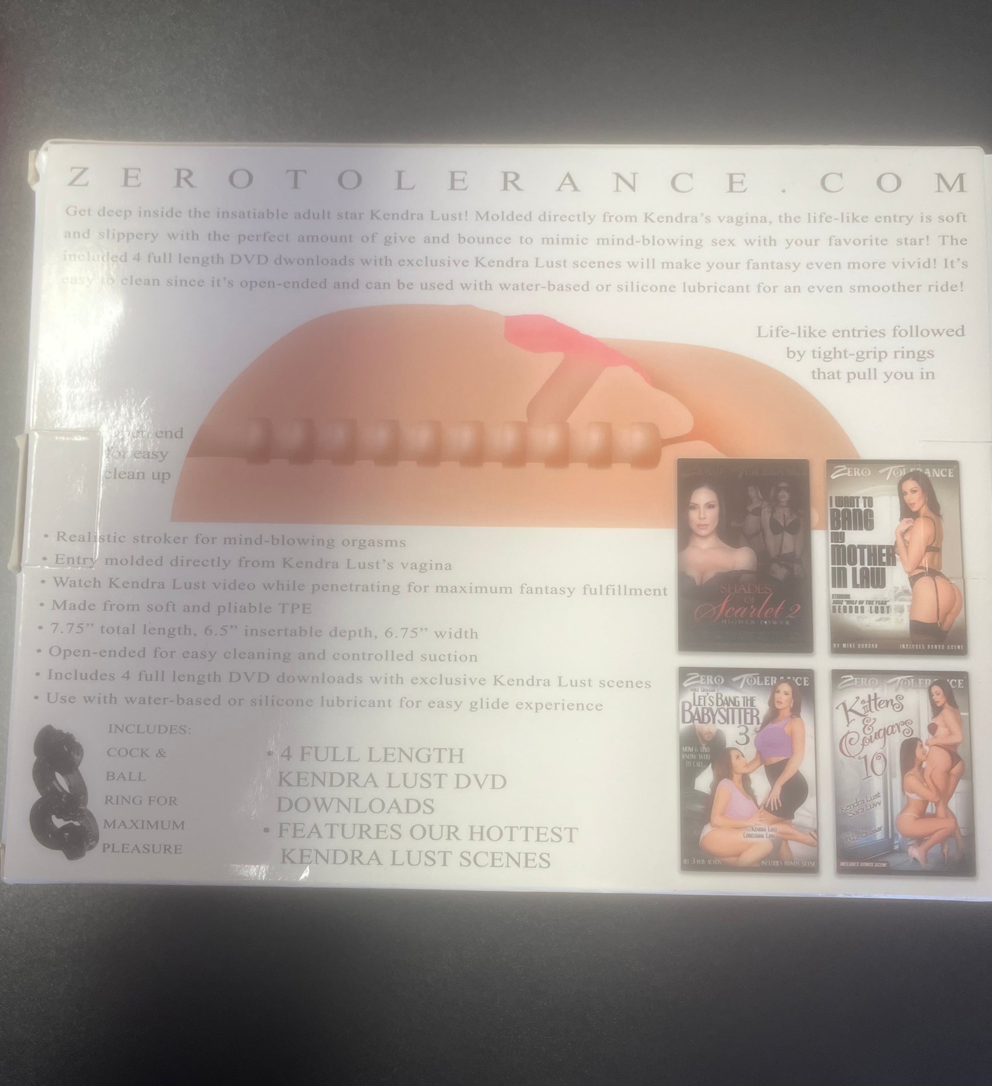 Discover intense pleasure with the Zero Tolerance Kendra Lust Life-sized Stroker. This life-like stroker features a separate pussy and ass entry with a bumpy, ultra-stimulating inner texture. Easily propped up or held she's good anywhere. An open-ended design makes for easy clean-up and added suction. Made with body-safe elastomer and compatible with any water-based lube.